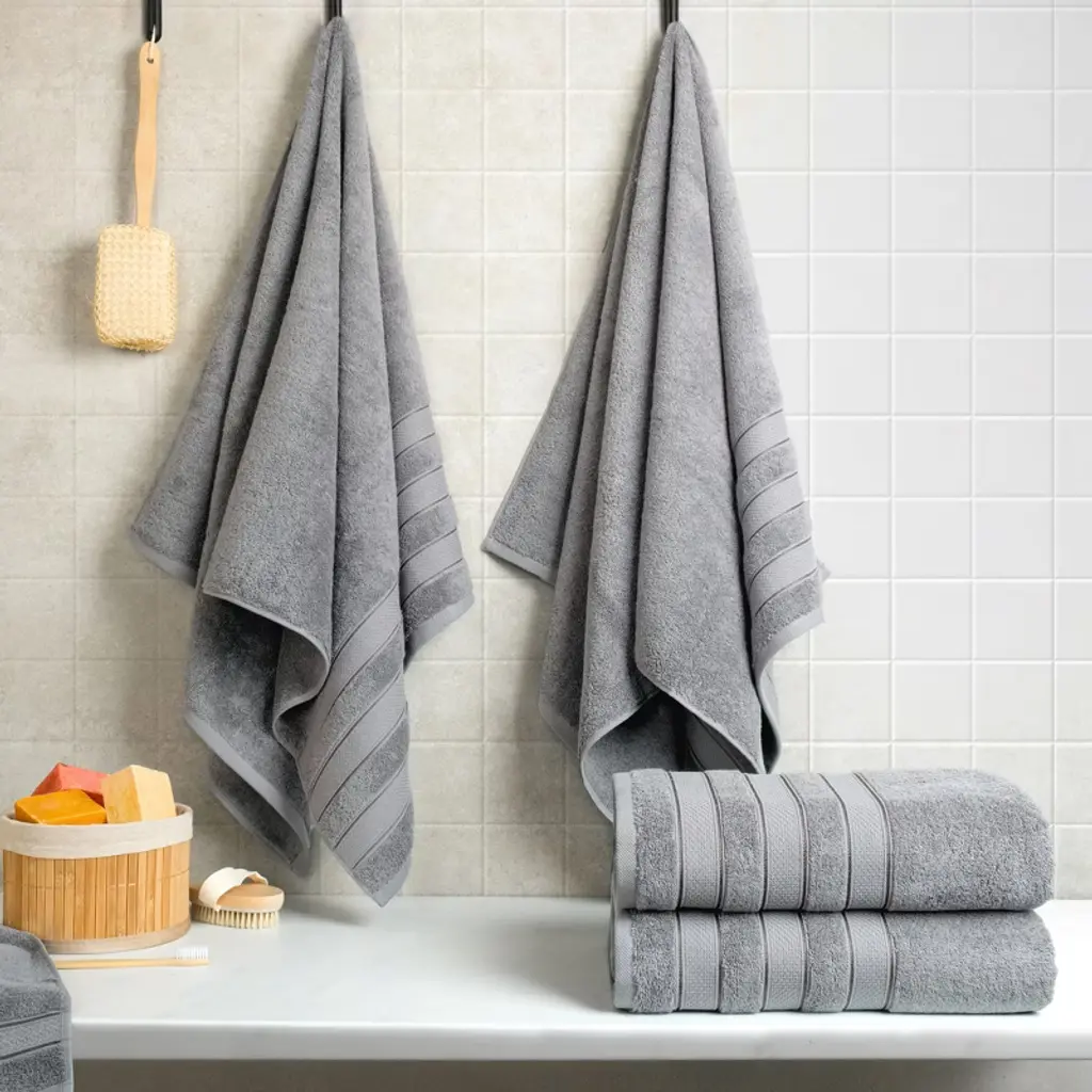 American Soft Linen 4 Piece 100% Cotton Salem Bath Towel Set – Luxury Extra Large Turkish Towels – Ultra-Soft, Absorbent & Quick-Dry Bathroom Towels – Premium Quality Plush Towels for Home, Hotel, Spa, Dorm & Gifts Elevate your daily routine with the American Soft Linen 4 Piece 100% Cotton Salem Bath Towel Set, designed to deliver a luxurious, spa-like experience every time you step out of the shower. Crafted from 100% premium materials, these bath towels are known for their unmatched softness, superior absorbency, and long-lasting durability. Whether you're drying off after a steamy bath, wrapping up at the gym, or adding a touch of hotel luxury to your guest bathroom, this 4-piece towel set brings comfort and elegance into your everyday life. Each towel in this set is generously oversized and jumbo, offering full-body coverage and a thick, plush feel that pampers your skin. The Salem collection design features rich textures, neatly hemmed edges, and a subtle yet stylish finish that complements any bathroom decor—from classic to contemporary. These towels aren’t just beautiful; they’re built to perform. The high GSM (grams per square meter) cotton ensures optimal absorbency, allowing them to soak up water quickly while still drying fast between uses, making them perfect for humid bathrooms and frequent use. Ideal for home, dorm, hotel, spa, gym, or poolside, these towels offer versatile utility while maintaining the elegance of a luxury set. Whether you're stocking up for your family, outfitting your Airbnb, or searching for a thoughtful housewarming or wedding gift, the American Soft Linen 4-piece bath towel set fits the bill. They’re suitable for adults, college students, and families alike—combining functionality, size, and softness in one premium package. This set includes four extra-large bath towels, each woven from natural Turkish cotton with zero harmful chemicals, ensuring they are safe, skin-friendly, and eco-conscious. They remain fluffy and gentle even after multiple washes, resisting wear, fraying, and fading over time. Simply toss them into your washing machine and tumble dry on low for a fresh, clean towel always. Backed by the trusted quality of American Soft Linen, this towel set meets the highest standards in luxury linens. Your skin deserves more than just an ordinary towel—it deserves a plush, cloud-like wrap that enhances your comfort and leaves you feeling refreshed and rejuvenated. Whether you're starting your day or winding down at night, do it with the warmth and comfort only premium Turkish cotton can provide.