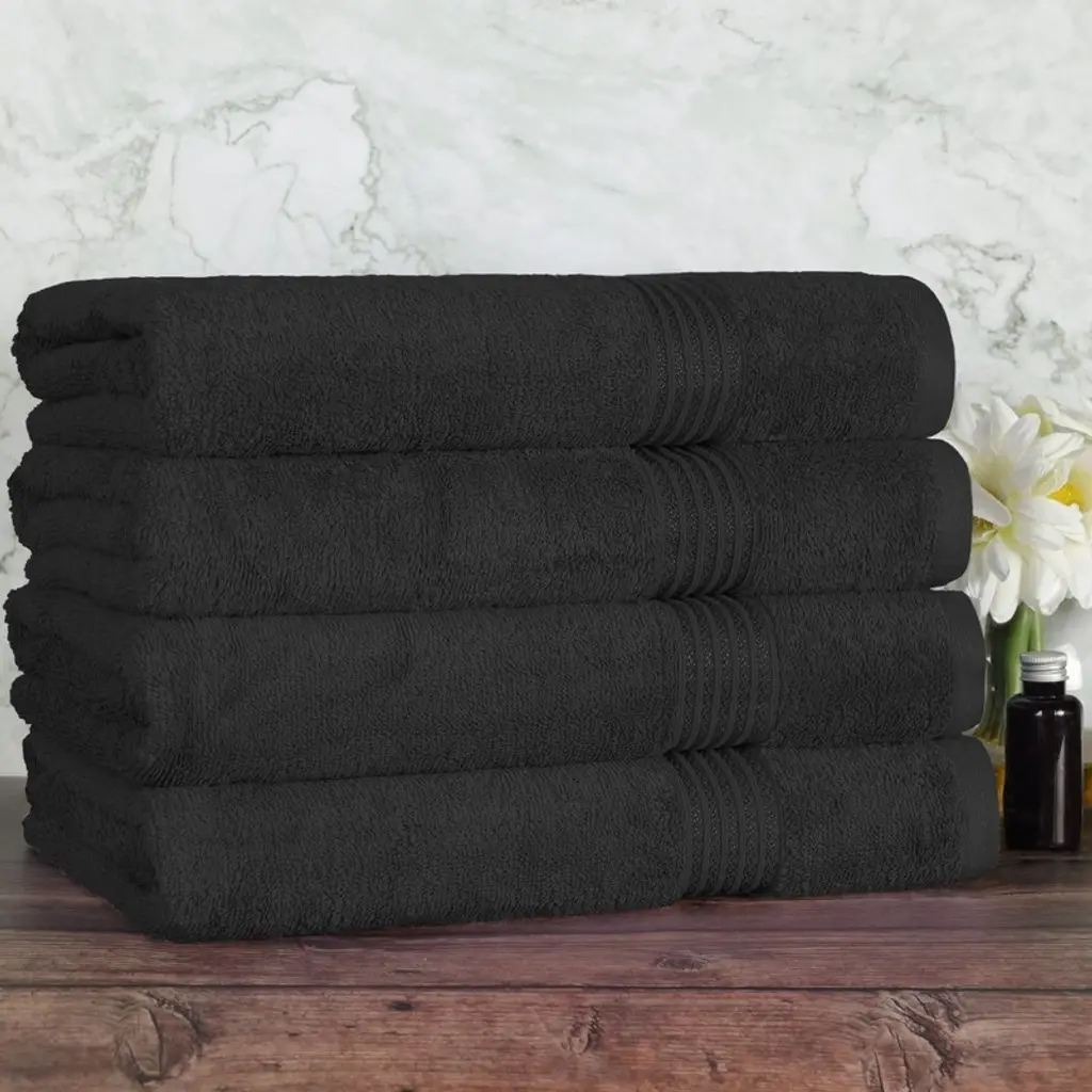 American Soft Linen 4 Piece 100% Cotton Salem Bath Towel Set – Luxury Extra Large Turkish Towels – Ultra-Soft, Absorbent & Quick-Dry Bathroom Towels – Premium Quality Plush Towels for Home, Hotel, Spa, Dorm & Gifts Elevate your daily routine with the American Soft Linen 4 Piece 100% Cotton Salem Bath Towel Set, designed to deliver a luxurious, spa-like experience every time you step out of the shower. Crafted from 100% premium materials, these bath towels are known for their unmatched softness, superior absorbency, and long-lasting durability. Whether you're drying off after a steamy bath, wrapping up at the gym, or adding a touch of hotel luxury to your guest bathroom, this 4-piece towel set brings comfort and elegance into your everyday life. Each towel in this set is generously oversized and jumbo, offering full-body coverage and a thick, plush feel that pampers your skin. The Salem collection design features rich textures, neatly hemmed edges, and a subtle yet stylish finish that complements any bathroom decor—from classic to contemporary. These towels aren’t just beautiful; they’re built to perform. The high GSM (grams per square meter) cotton ensures optimal absorbency, allowing them to soak up water quickly while still drying fast between uses, making them perfect for humid bathrooms and frequent use. Ideal for home, dorm, hotel, spa, gym, or poolside, these towels offer versatile utility while maintaining the elegance of a luxury set. Whether you're stocking up for your family, outfitting your Airbnb, or searching for a thoughtful housewarming or wedding gift, the American Soft Linen 4-piece bath towel set fits the bill. They’re suitable for adults, college students, and families alike—combining functionality, size, and softness in one premium package. This set includes four extra-large bath towels, each woven from natural Turkish cotton with zero harmful chemicals, ensuring they are safe, skin-friendly, and eco-conscious. They remain fluffy and gentle even after multiple washes, resisting wear, fraying, and fading over time. Simply toss them into your washing machine and tumble dry on low for a fresh, clean towel always. Backed by the trusted quality of American Soft Linen, this towel set meets the highest standards in luxury linens. Your skin deserves more than just an ordinary towel—it deserves a plush, cloud-like wrap that enhances your comfort and leaves you feeling refreshed and rejuvenated. Whether you're starting your day or winding down at night, do it with the warmth and comfort only premium Turkish cotton can provide.