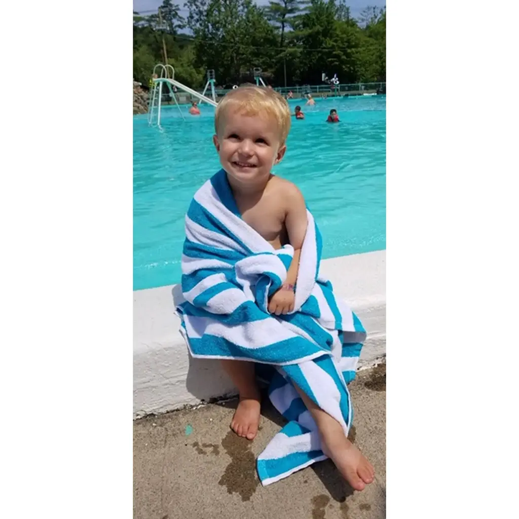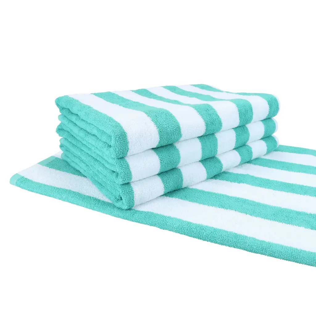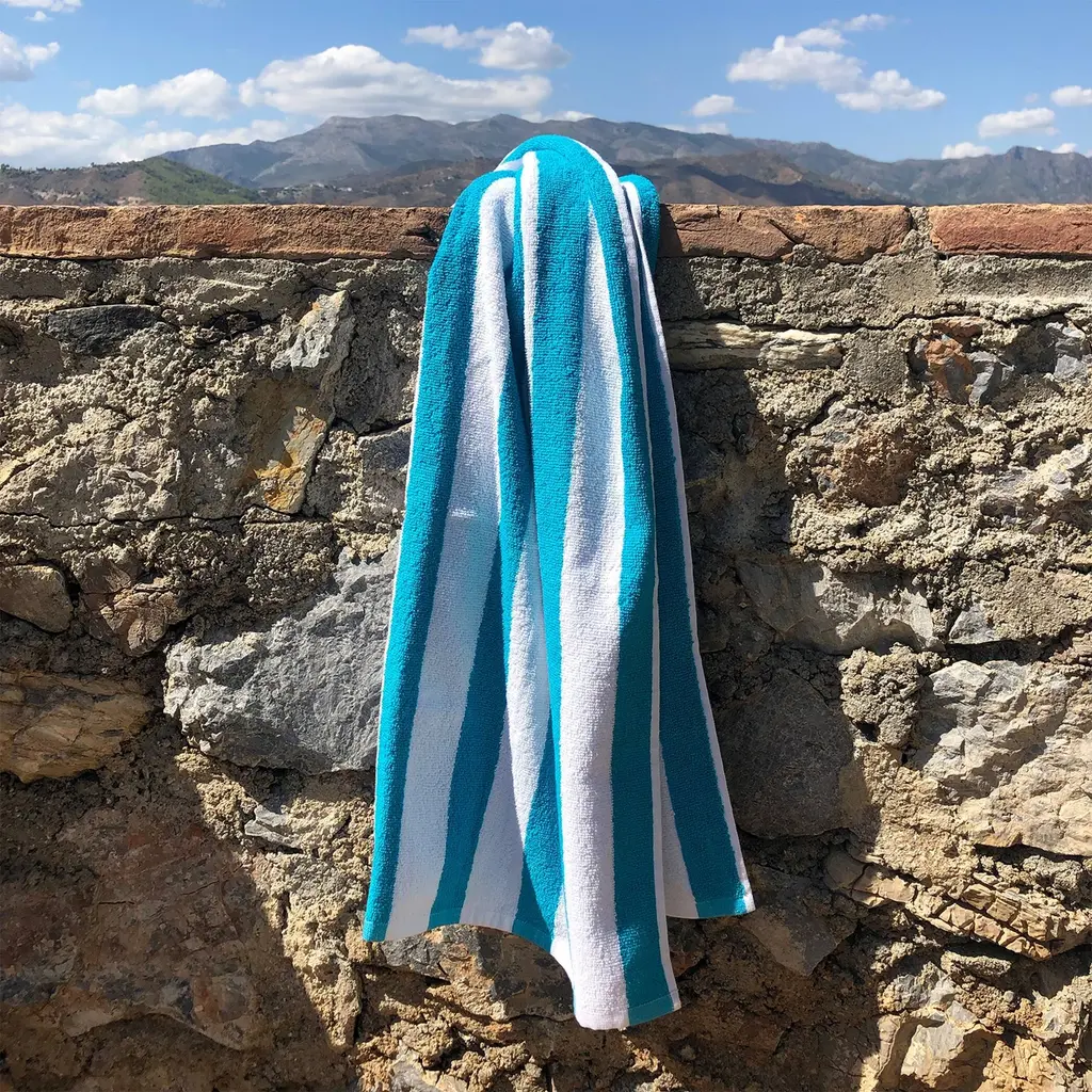 The Arkwright Cali Cabana 4-Piece Beach Towel are soft, absorbent, and quick-drying. Our Cali Cabana pool towels are woven with yarn-dyed cotton so will not fade easily. It's a classic white terry beach towel with vibrant colored Cabana stripes. You can't go wrong with this Cali Cabana stripe beach towel at a pool or a beach or when traveling. Stand out with our bright and vibrant color options. Originally developed as a hotel pool towel, our Cabana striped beach towel pack make terrific home bath towels, hotel towels, resort beach towels, Airbnb bed and breakfast bath towels, VRBO vacation rental, gym towels, and hotel spa towels. Machine Washable with like colors. Do not bleach. Tumble dry low. Always wash new Cabana beach towels before use as some lint may be generated. Includes 4 beach towels Vibrant striped design 100% ring spun cotton Machine Washable