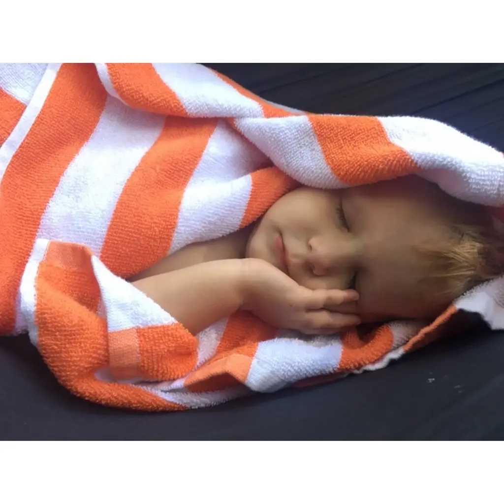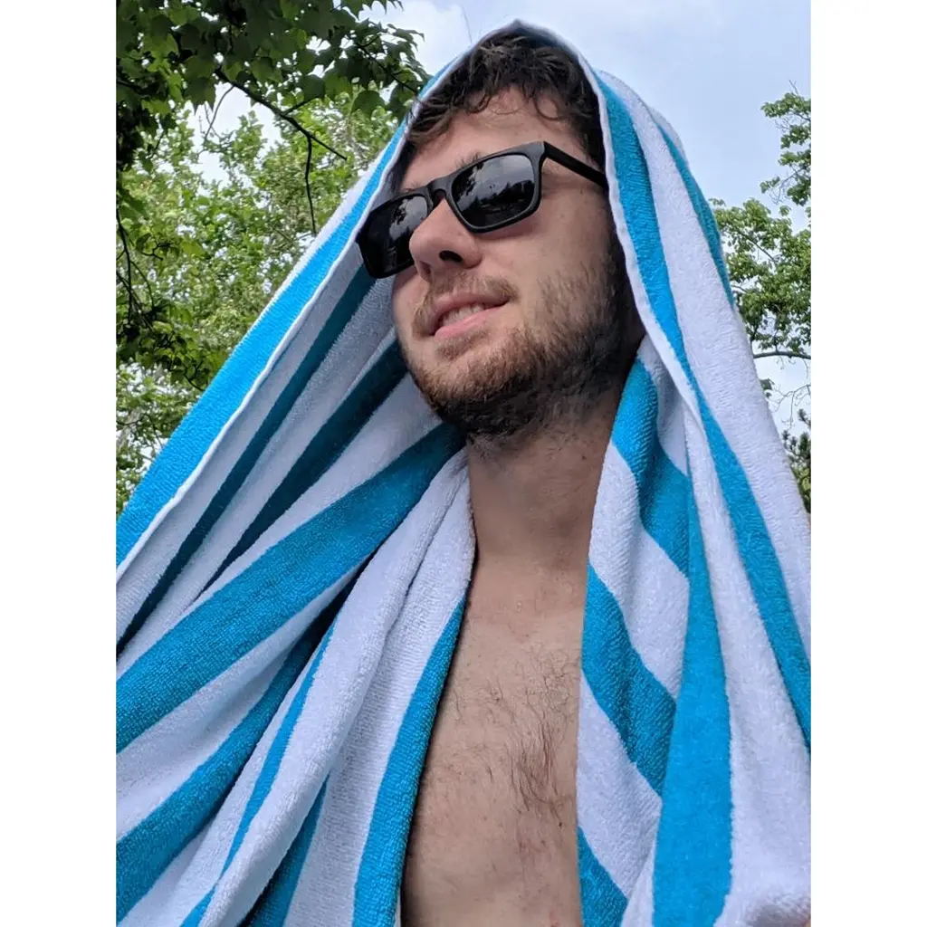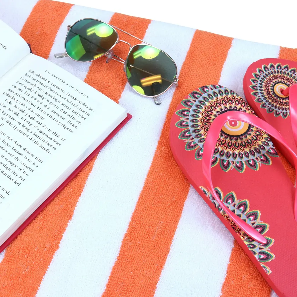 The Arkwright Cali Cabana 4-Piece Beach Towel are soft, absorbent, and quick-drying. Our Cali Cabana pool towels are woven with yarn-dyed cotton so will not fade easily. It's a classic white terry beach towel with vibrant colored Cabana stripes. You can't go wrong with this Cali Cabana stripe beach towel at a pool or a beach or when traveling. Stand out with our bright and vibrant color options. Originally developed as a hotel pool towel, our Cabana striped beach towel pack make terrific home bath towels, hotel towels, resort beach towels, Airbnb bed and breakfast bath towels, VRBO vacation rental, gym towels, and hotel spa towels. Machine Washable with like colors. Do not bleach. Tumble dry low. Always wash new Cabana beach towels before use as some lint may be generated. Includes 4 beach towels Vibrant striped design 100% ring spun cotton Machine Washable