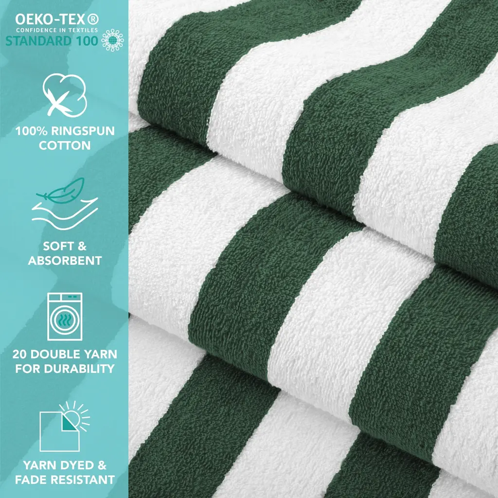 Arkwright California Cabana 4-Piece Striped Beach Towel Set - 30x70 - Hunter Green
