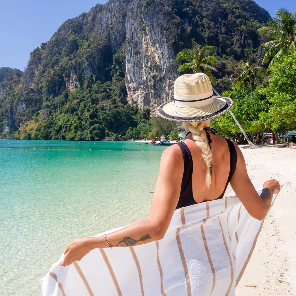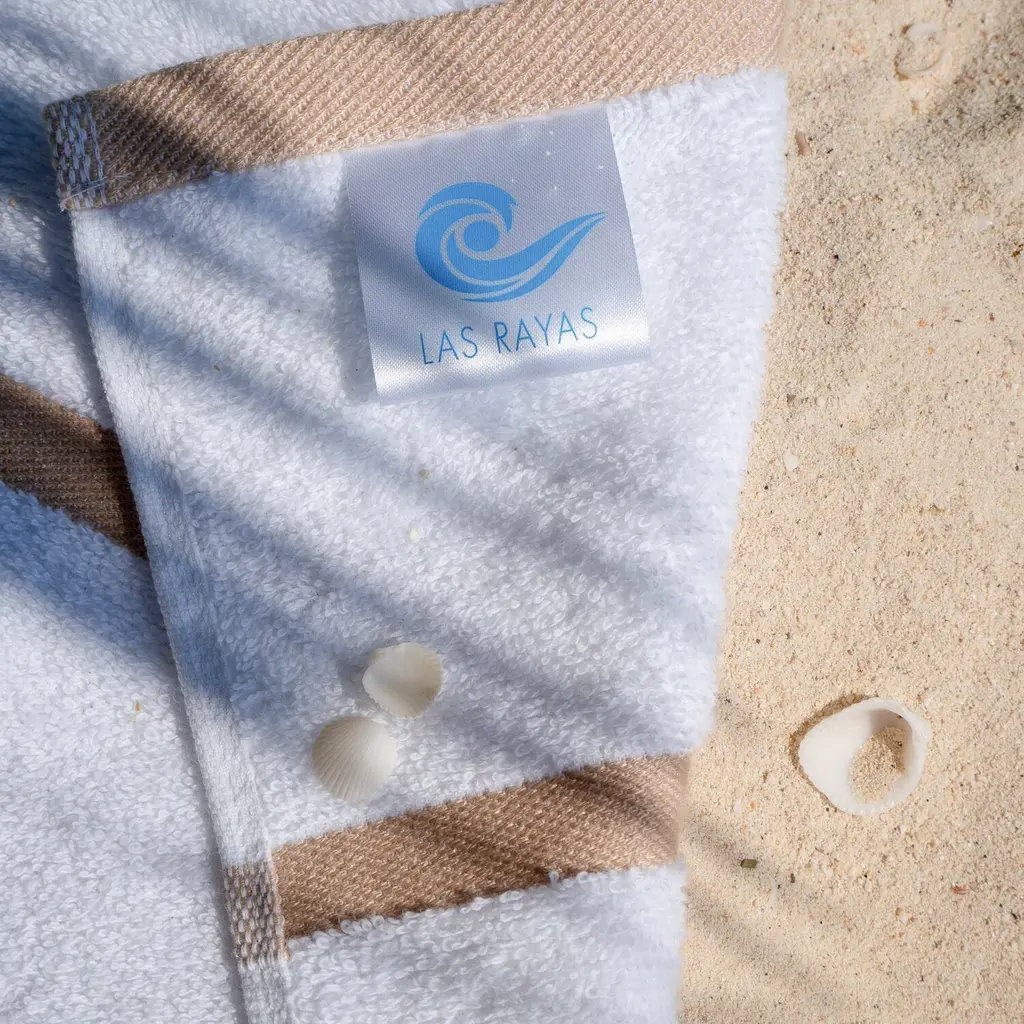 The Arkwright Las Rayas 4-Piece Beach Towel set includes plush towels that are made from 100% ring spun cotton and feature beautiful flat-woven horizontal stripes. This luxury bath towel set of four is thick, soft, and absorbent. Our white beach towels wick water away fast and are considered a quick dry towel. These luxury towels are beach, pool, or bath towels for adults. Optically bright white fluffy towels with sophisticated, colorful bath towel stripes. Whether you're looking for hotel towels for bathrooms, spa towels, hotel spa towels, personal shower towels, travel beach towels, swim towels for your pool, or just a decorative bath towel, Las Rayas is one luxury towel that you cannot ignore. These towels can be machine washed in a regular cycle with like colors. Set of four towels Vibrant horizontal stripes 100% Cotton Machine Washable