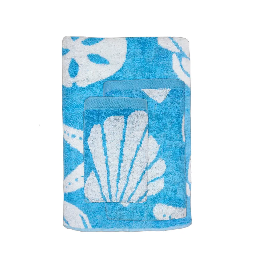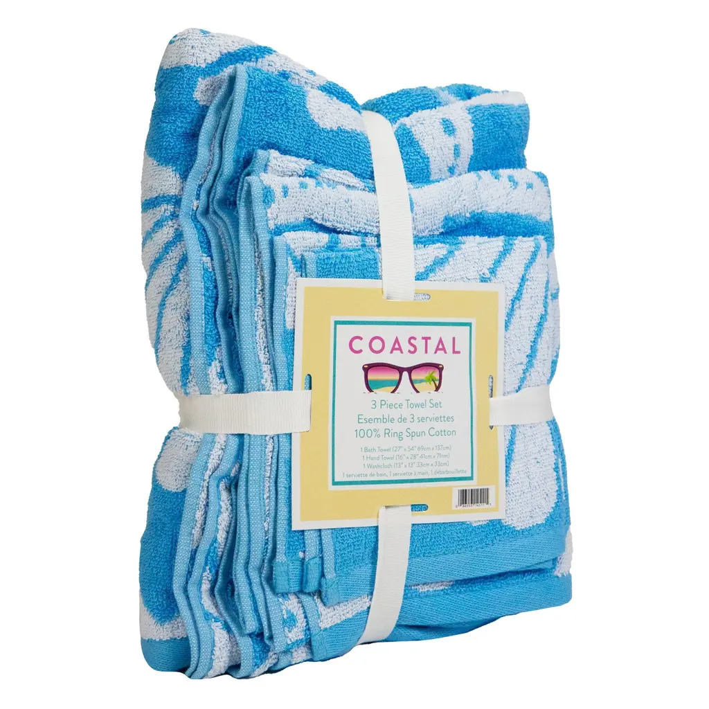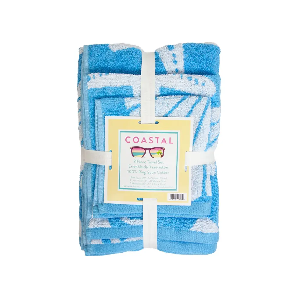 These 3-piece nautical themed bathroom towel sets feature 1 bath towel, 1 hand towel, and 1 washcloth made from 100% ring spun cotton. Coastal bathroom towel sets combine vibrant pastels with an iconic beach towel motif. Attractively packaged with a cloth ribbon and beachy insert, these nautical themed bath towels will brighten up any bathroom. Oceanic coastal bath towel sets are soft, highly absorbent, and dry quickly. These oceanic bath towel sets for bathrooms make perfect additions to vacation beach homes and VRBOs & Airbnb rentals. Use the bath towel as a kid's pool towel or beach towel. Our bathroom towels are designed to stay soft and colorful for years when cared for properly. Please machine wash with like colors, do not bleach, tumble dry low, and remove from the dryer as soon as they're done.