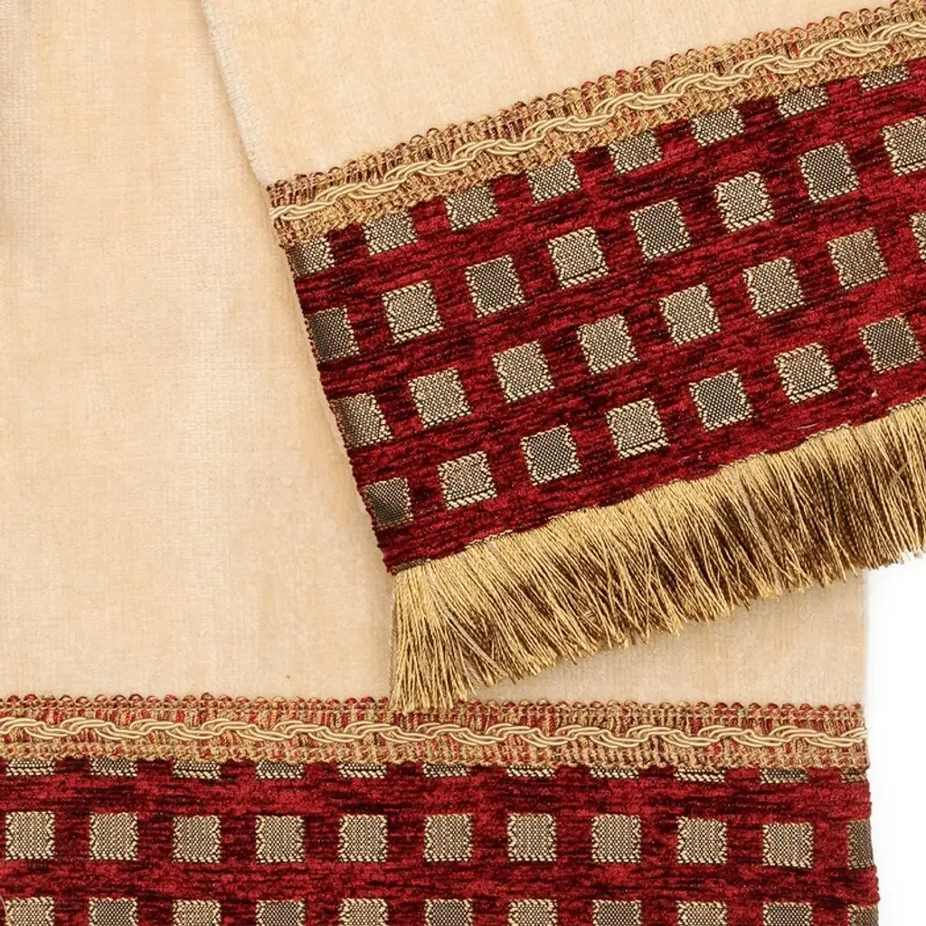 This decorative towel is designed by the Austin Horn brand design team and each piece is expertly handcrafted by artisans with the most luxurious fabrics and decorative trims.
