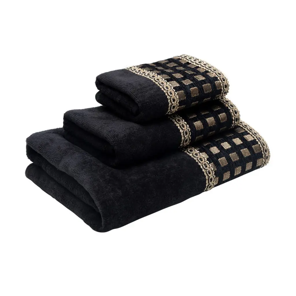 Austin Horn Classics Trackless Gimp Black 3-Piece Decorative Towel Set - N/a - Light Gold