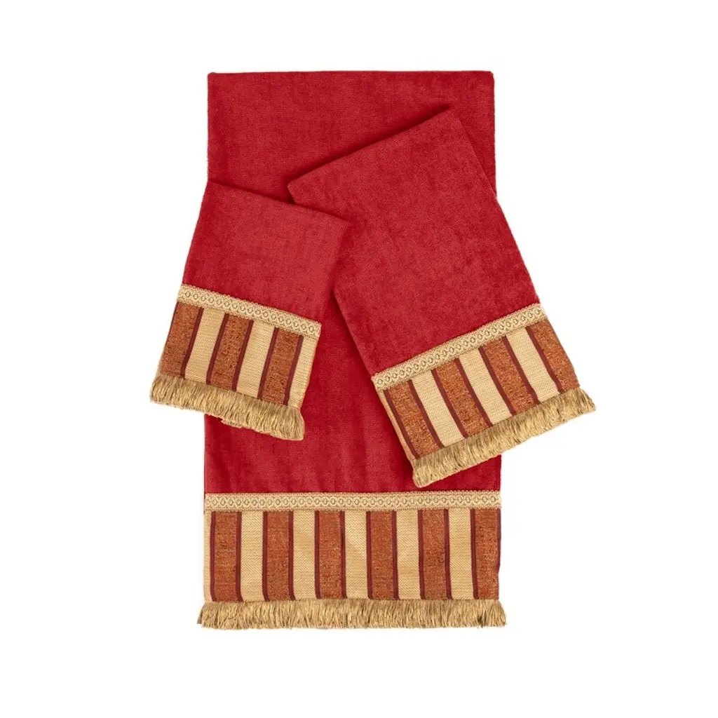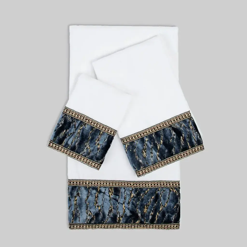 This decorative towel is designed by the Austin Horn brand design team and each piece is expertly handcrafted by artisans with the most luxurious fabrics and decorative trims.