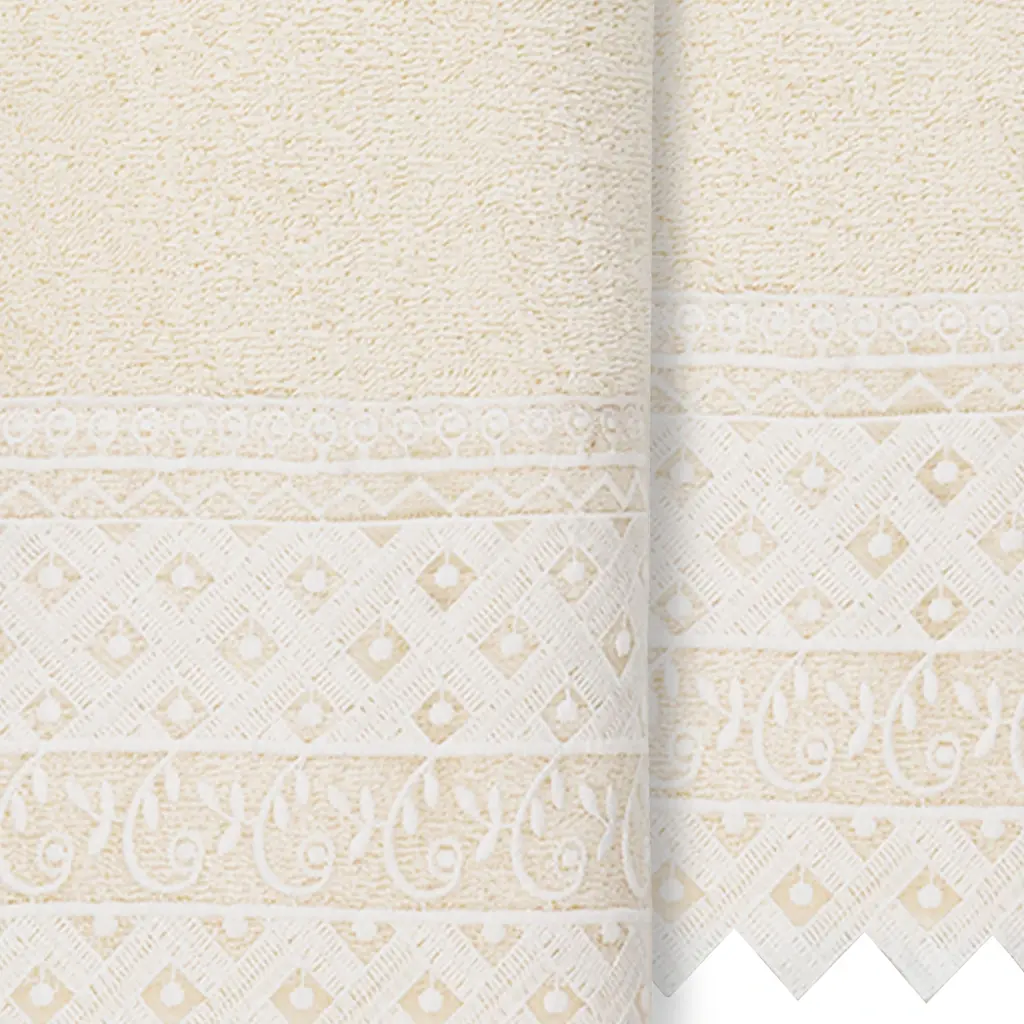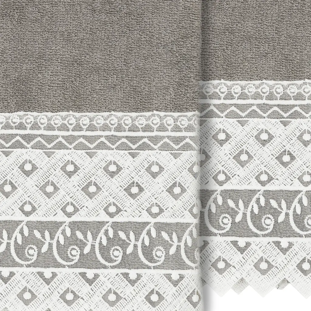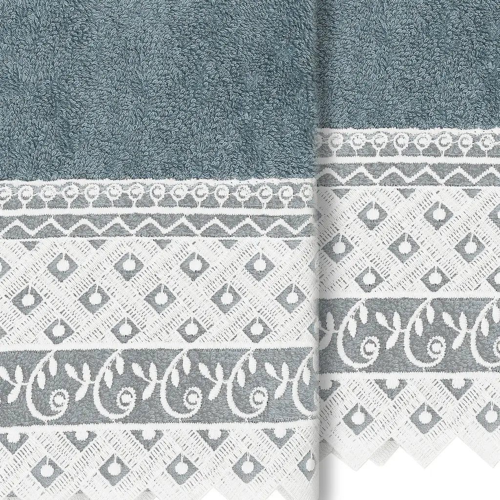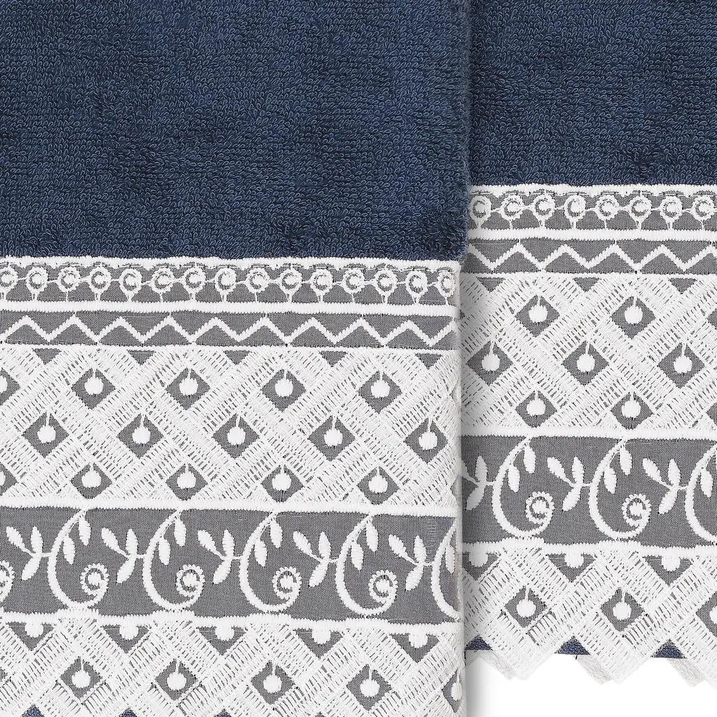 The Aiden Lace Towel Collection by Authentic Hotel and Spa features an intricate floral trellis motif, embroidered on a white organza lace border with scalloped bottom edge. These soft and luxurious towels are made of 100% premium Turkish Cotton and offer lasting absorbency and superior durability. The Aiden Lace Collection will bring a graceful note to your bath decor.100% Premium Turkish CottonSuperbly absorbent and quick dryingAvailable in a range of lovely towel colorsMachine wash cold, No bleach, line dry or dry cleanSet includes 2 hand towels (16" x 30")Made in TurkeyProudly Embellished in USA