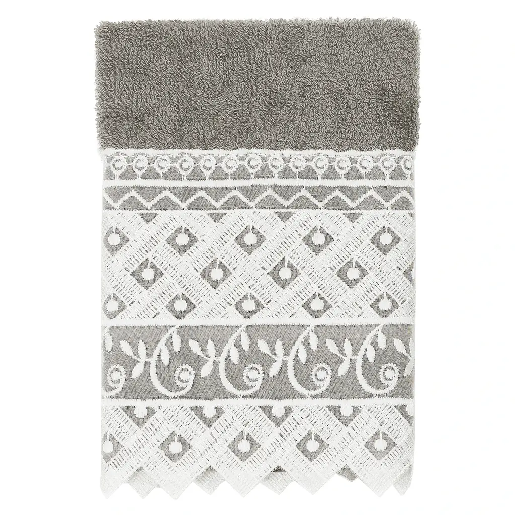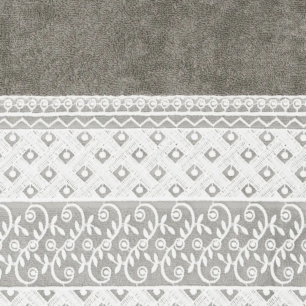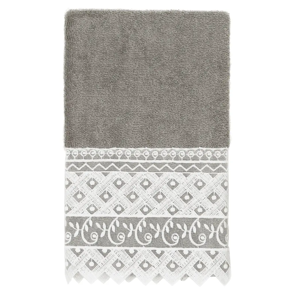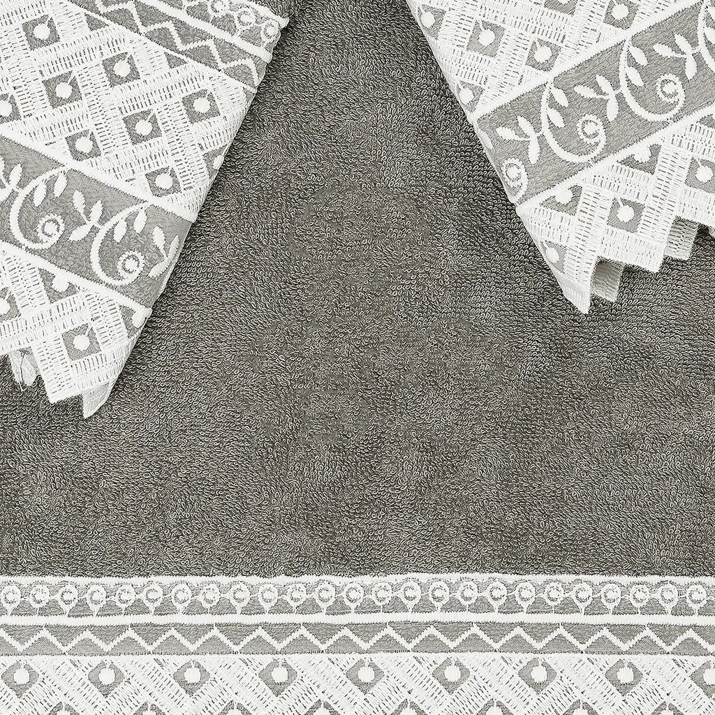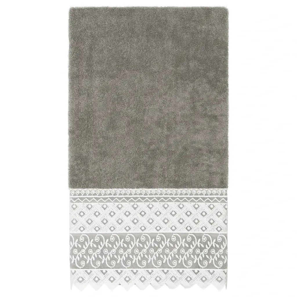 Authentic Hotel And Spa 100% Turkish Cotton Aiden 3Pc White Lace Embellished Towel Set - Dark Gray