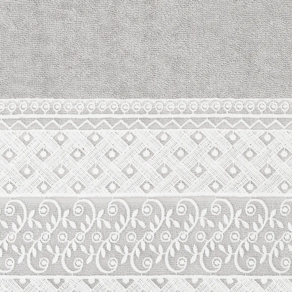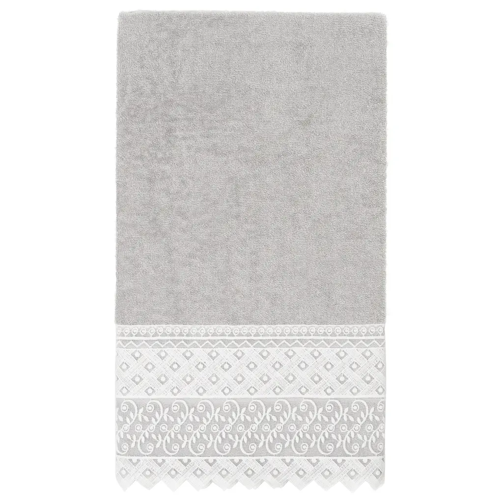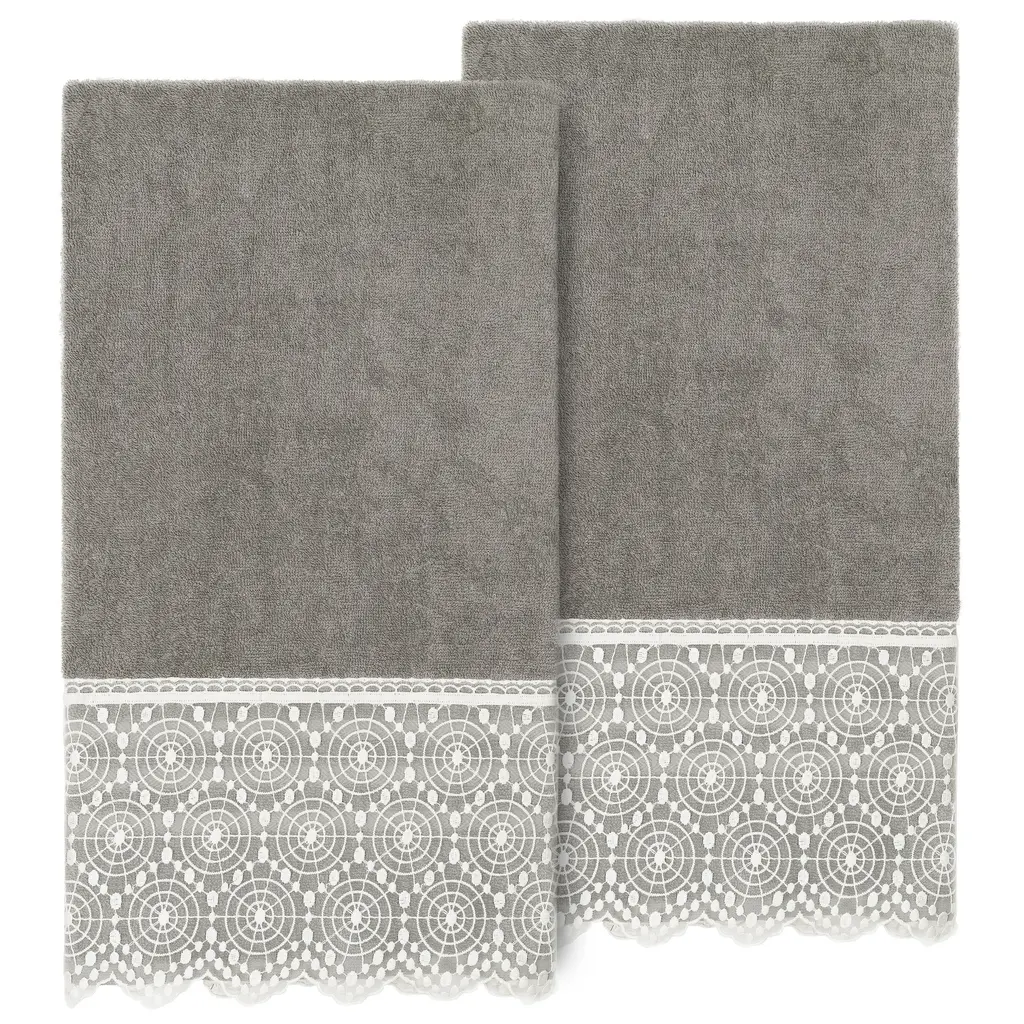 Authentic Hotel And Spa 100% Turkish Cotton Aiden 3Pc White Lace Embellished Towel Set - Light Gray