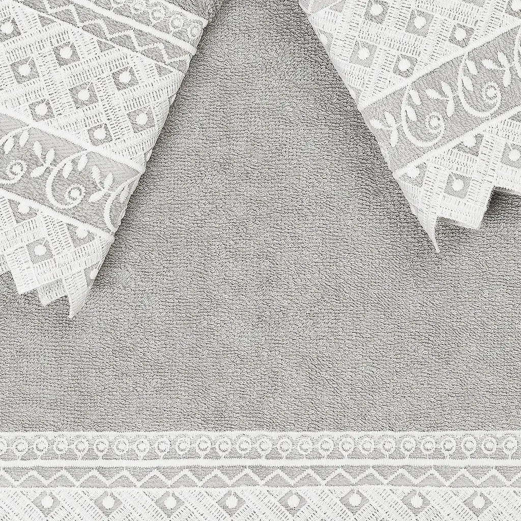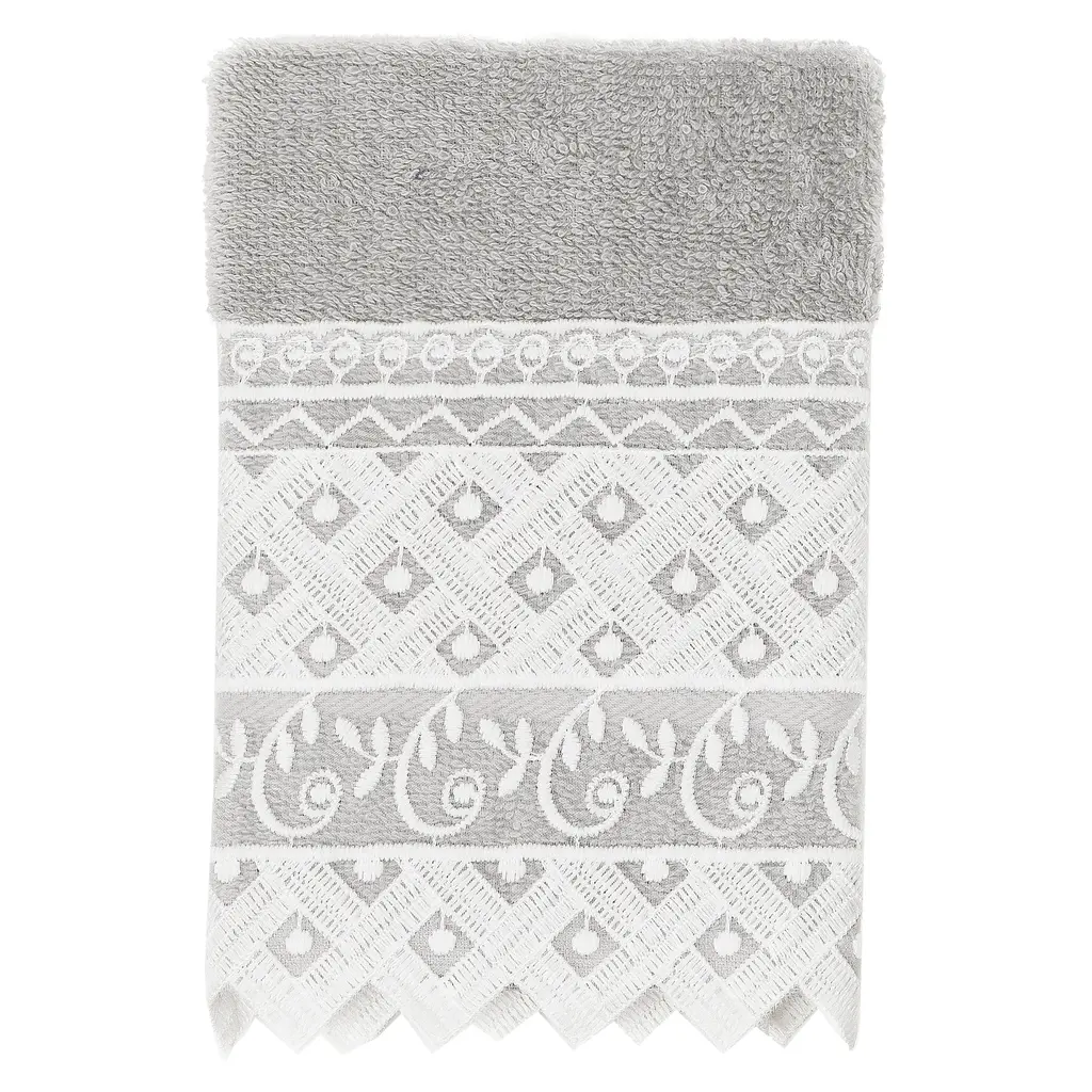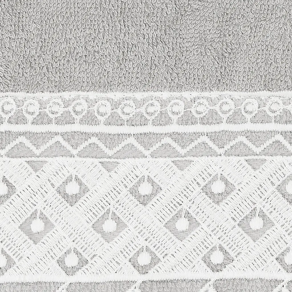 Authentic Hotel And Spa 100% Turkish Cotton Aiden 3Pc White Lace Embellished Towel Set - Light Gray