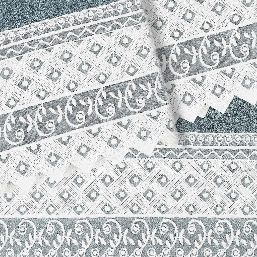 Authentic Hotel And Spa 100% Turkish Cotton Aiden 3Pc White Lace Embellished Towel Set - Teal