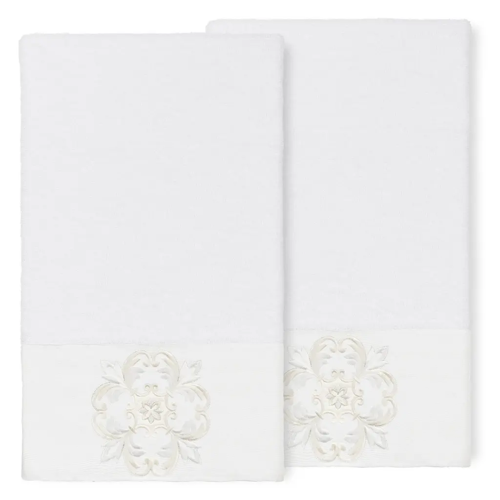 Authentic Hotel And Spa 100% Turkish Cotton Alyssa 2Pc Embellished Bath Towel Set - White