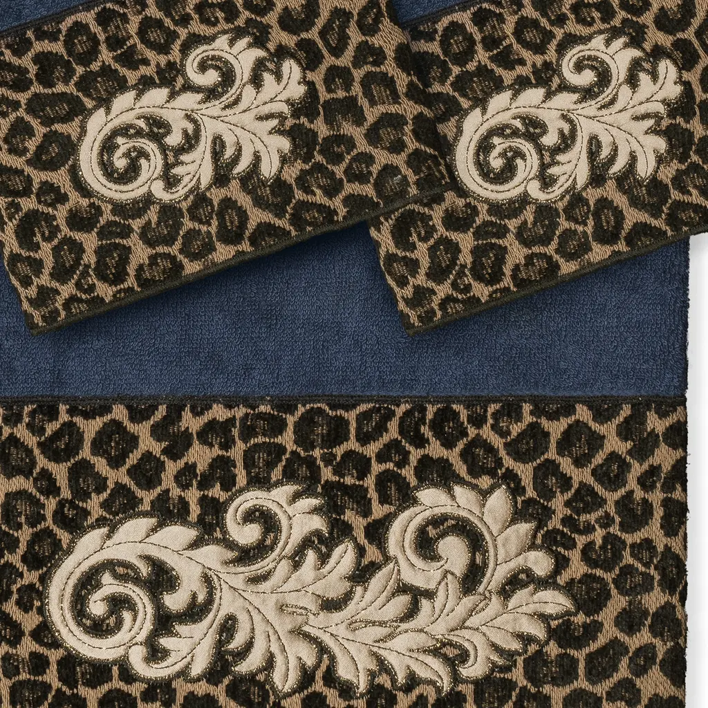 The April Embellished Towel Collection features an elegant lustrous appliqué scroll motif, embroidered on a plush cheetah patterned border. These soft and luxurious towels are made of 100% premium Turkish Cotton and offer lasting absorbency and superior durability. 100% Premium Turkish Cotton Superbly absorbent and quick drying Available in a range of lovely towel colors Machine wash cold, No bleach, line dry or dry clean Set includes 1 bath towel (27" x 54") / 2 hand towels (16" x 30") Embellished in USA Made in Turkey
