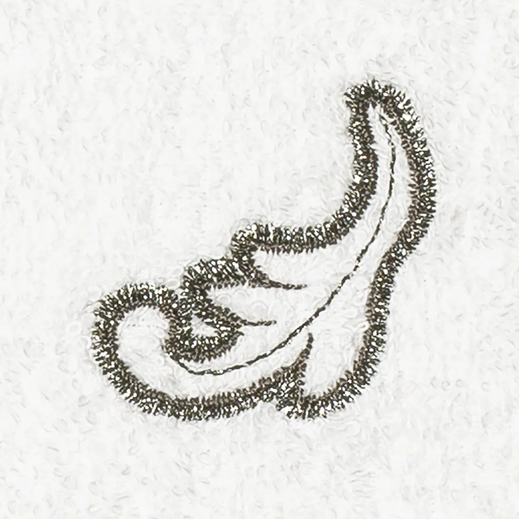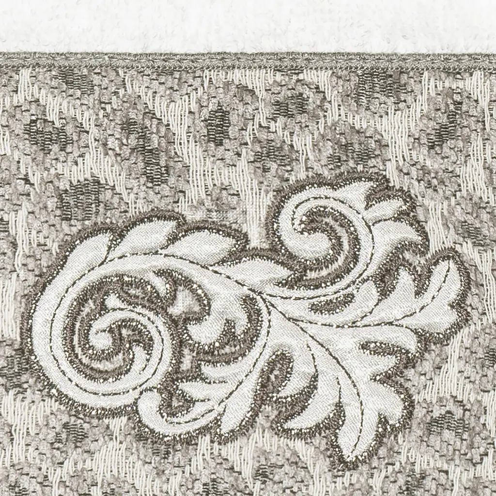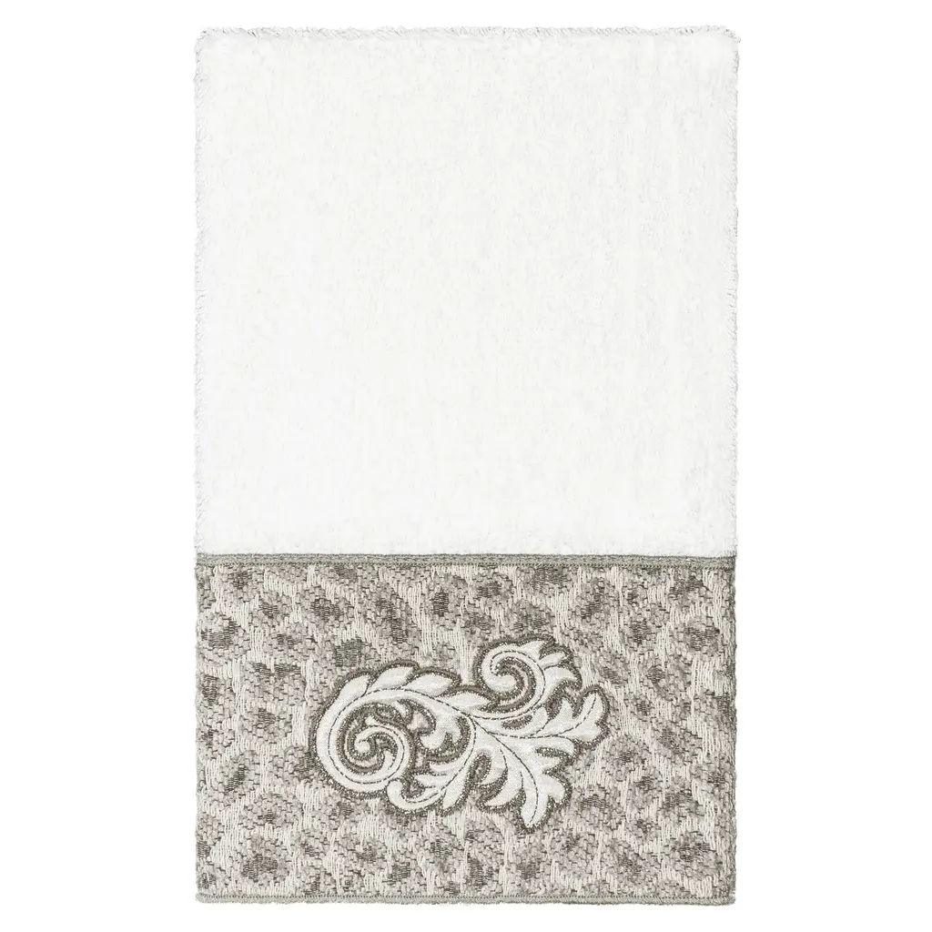 The April Embellished Towel Collection features an elegant lustrous appliqué scroll motif, embroidered on a plush cheetah patterned border. These soft and luxurious towels are made of 100% premium Turkish Cotton and offer lasting absorbency and superior durability. 100% Premium Turkish Cotton Superbly absorbent and quick drying Available in a range of lovely towel colors Machine wash cold, No bleach, line dry or dry clean Set includes 1 bath towel (27" x 54") / 1 hand towel (16" x 30") / 1 washcloth (13" x 13") Embellished in USA Made in Turkey
