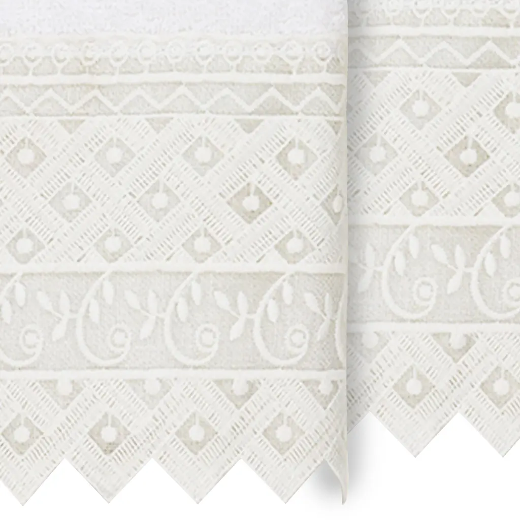 The Arian Lace Towel Collection by Authentic Hotel and Spa features an elegant circles motif, embroidered on a cream organza lace border with scalloped bottom edge. These soft and luxurious towels are made of 100% premium Turkish Cotton and offer lasting absorbency and superior durability. The Arian Lace Collection will bring a sophisticated note to your bath decor.100% Premium Turkish CottonSuperbly absorbent and quick dryingAvailable in a range of lovely towel colorsMachine wash cold, No bleach, line dry or dry cleanSet includes 2 hand towels (16" x 30")Made in TurkeyProudly Embellished in USA