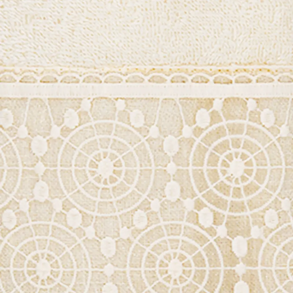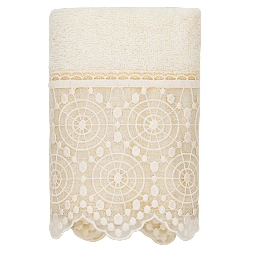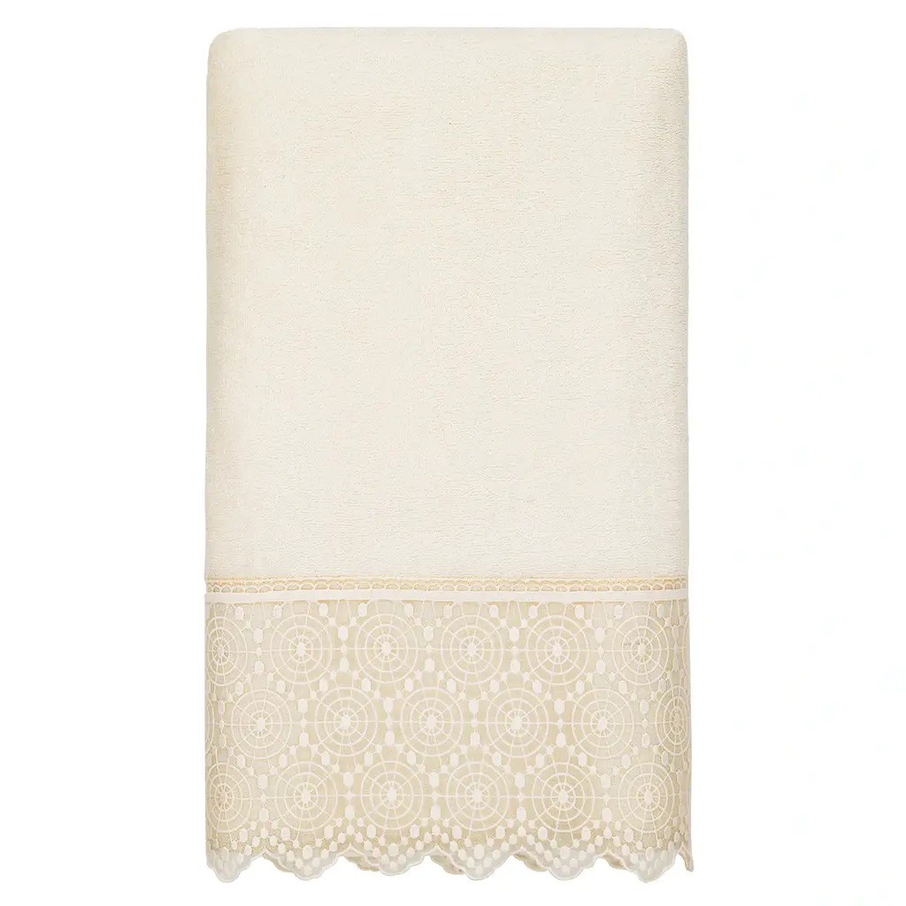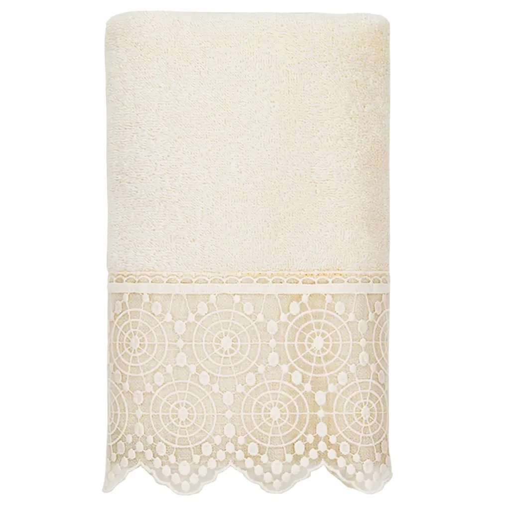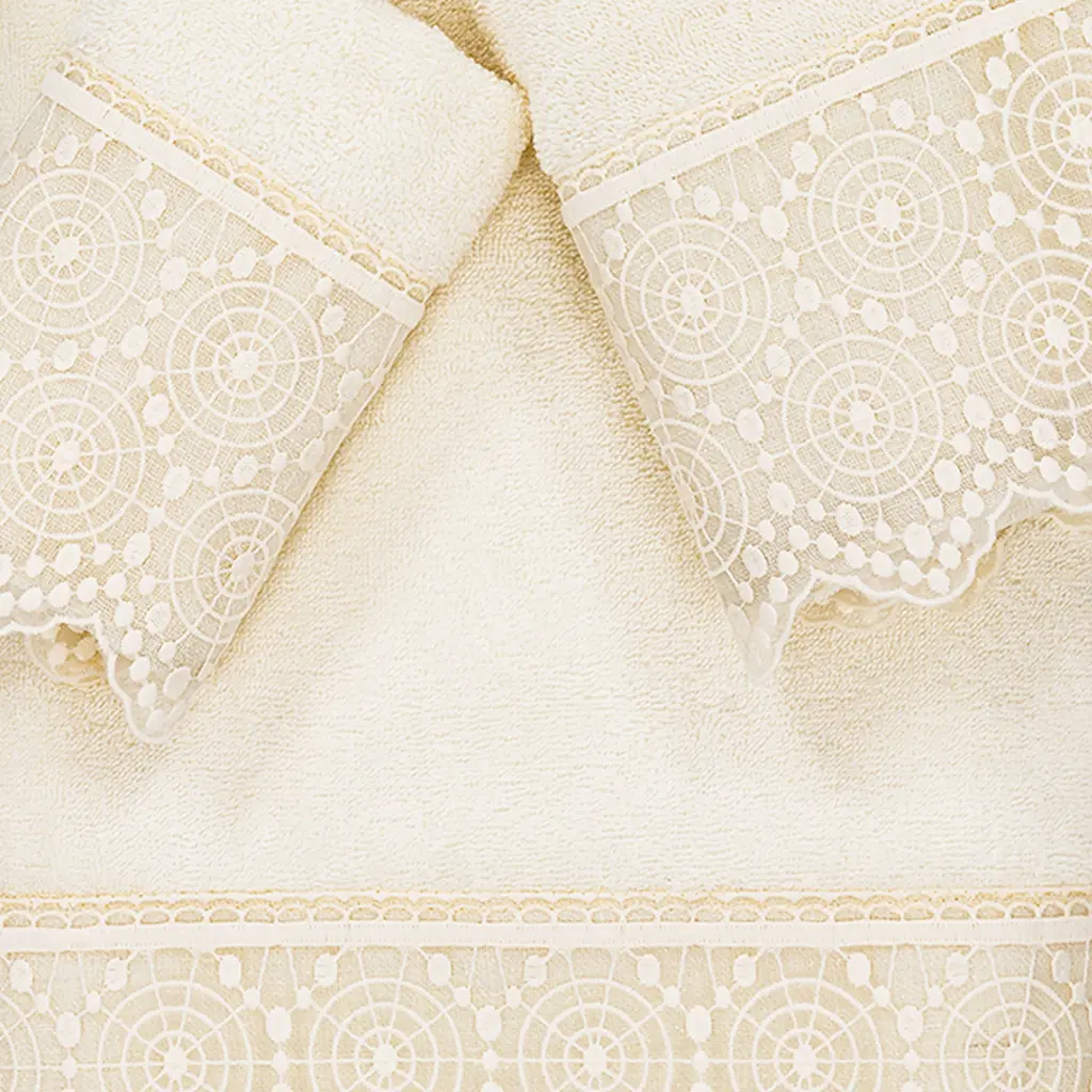 Authentic Hotel And Spa 100% Turkish Cotton Arian 3Pc Cream Lace Embellished Towel Set - Cream