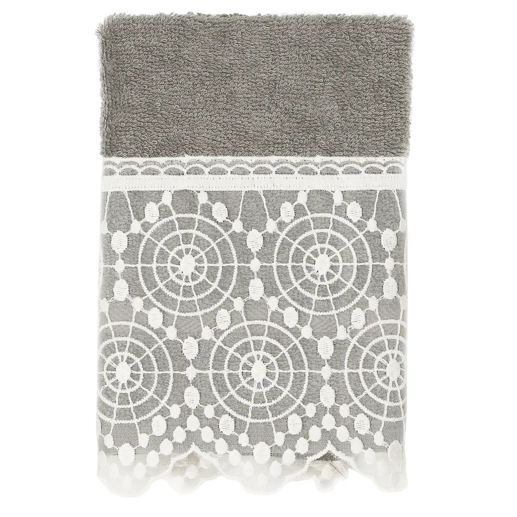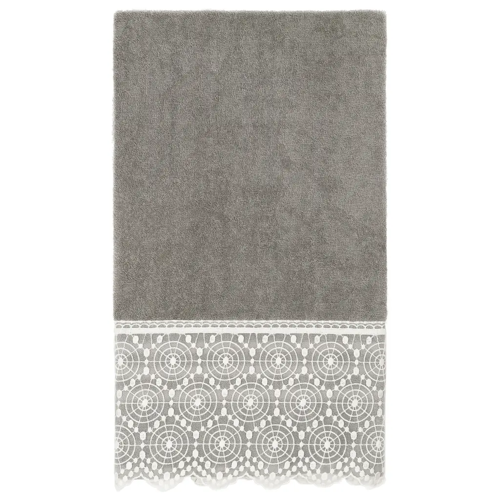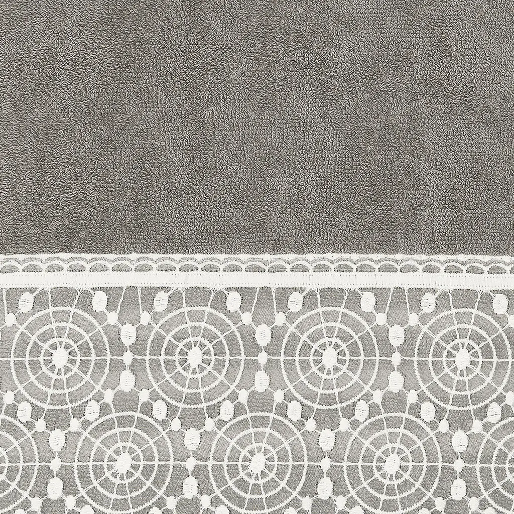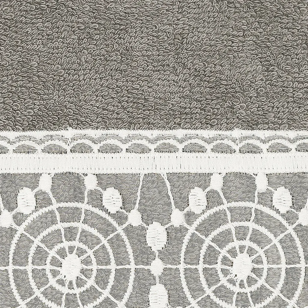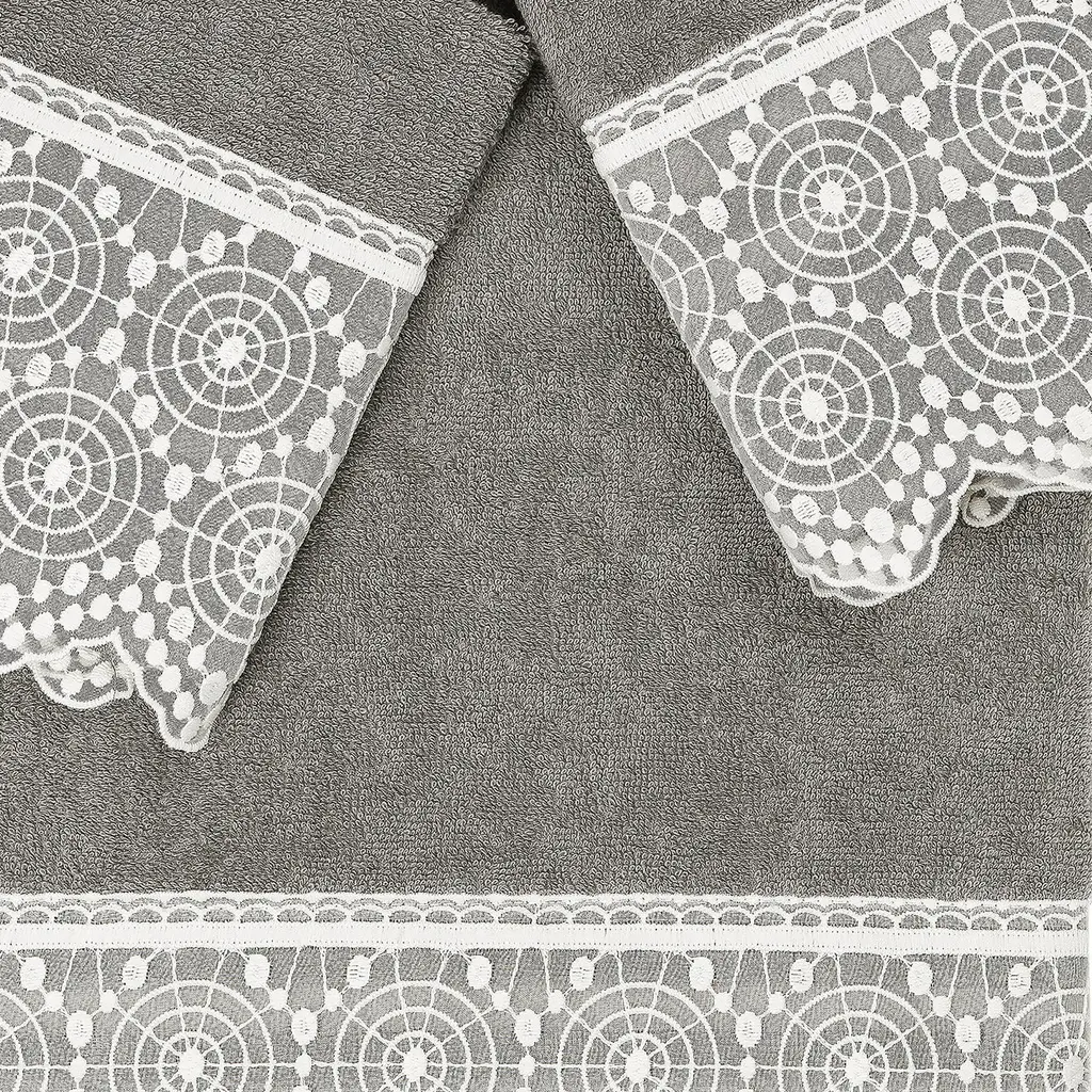 Authentic Hotel And Spa 100% Turkish Cotton Arian 3Pc Cream Lace Embellished Towel Set - Dark Gray