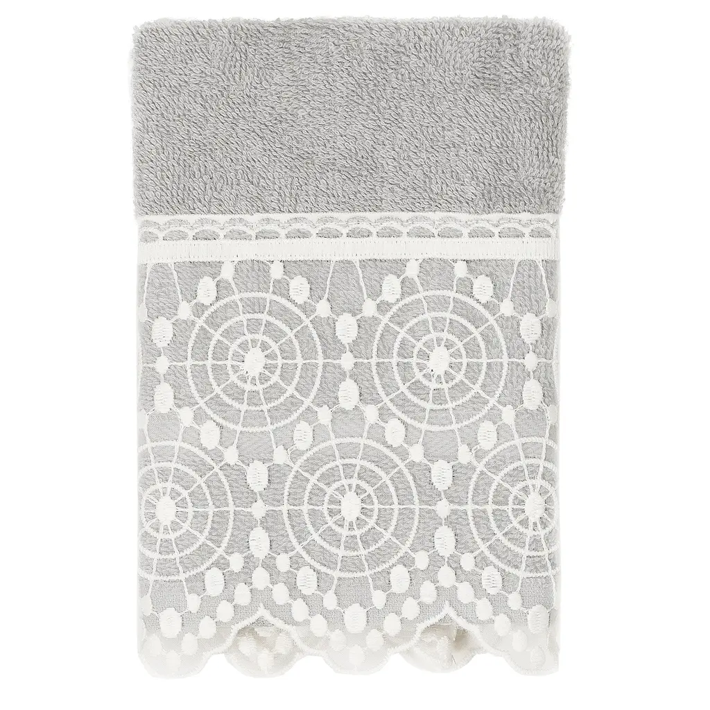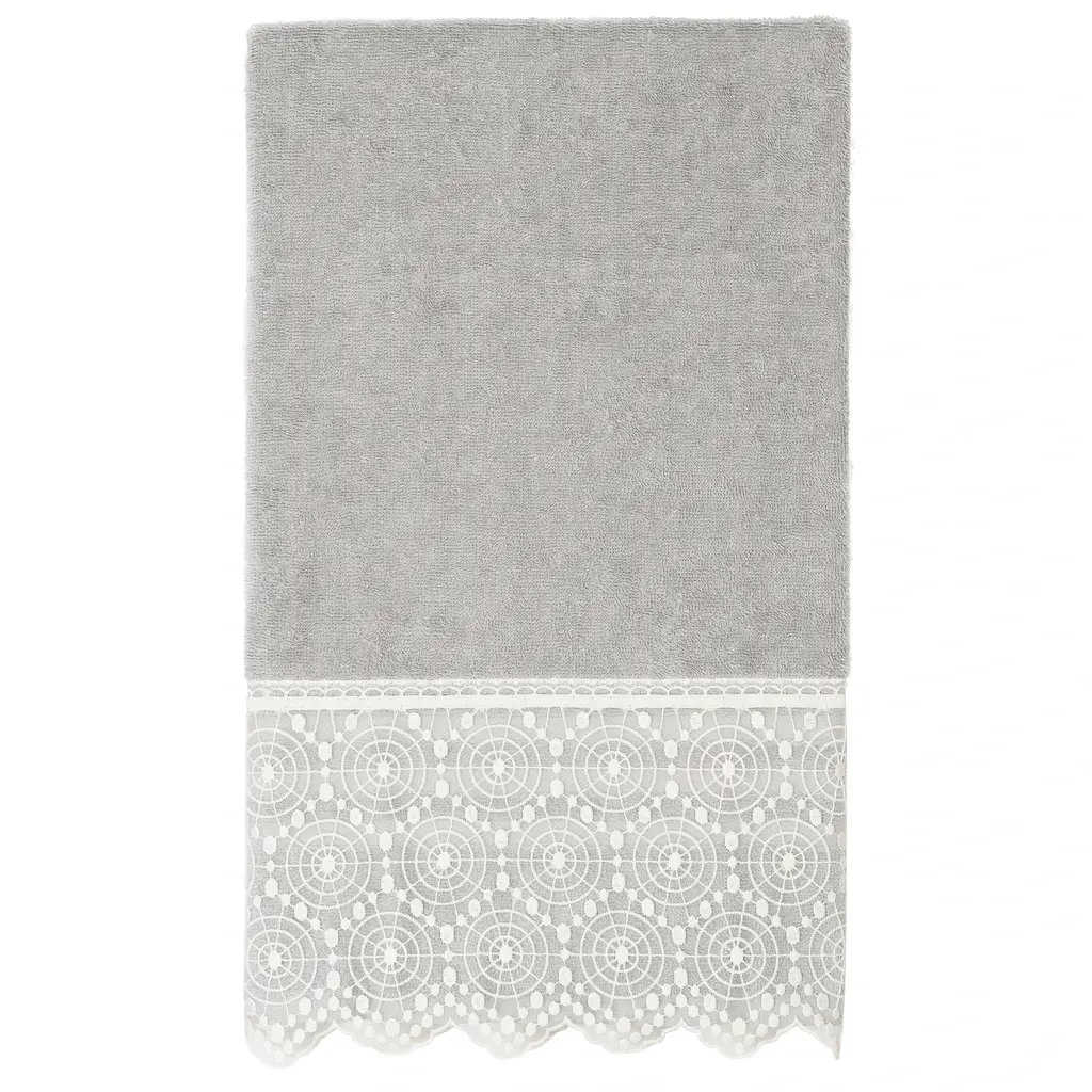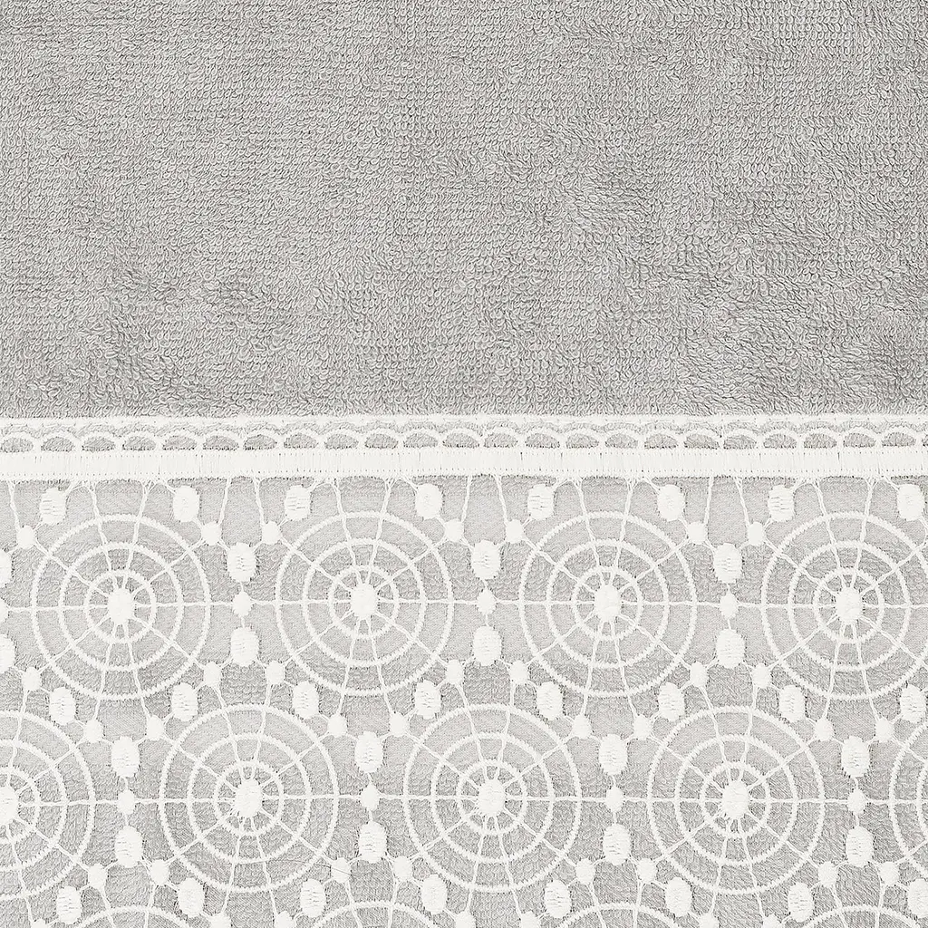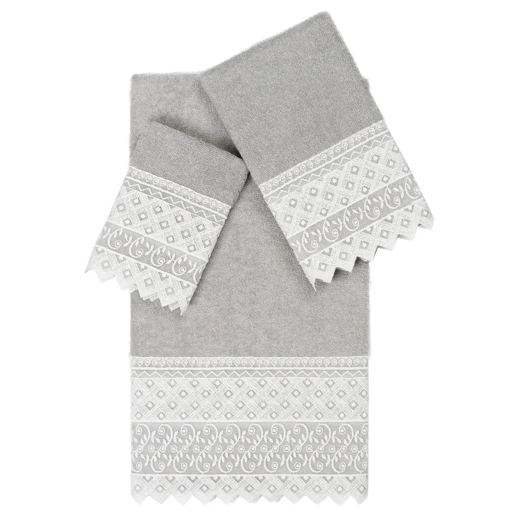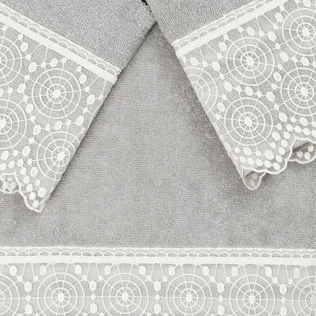 Authentic Hotel And Spa 100% Turkish Cotton Arian 3Pc Cream Lace Embellished Towel Set - Light Gray