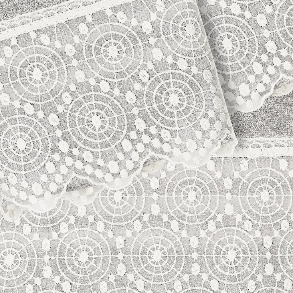 Authentic Hotel And Spa 100% Turkish Cotton Arian 3Pc Cream Lace Embellished Towel Set - Light Gray
