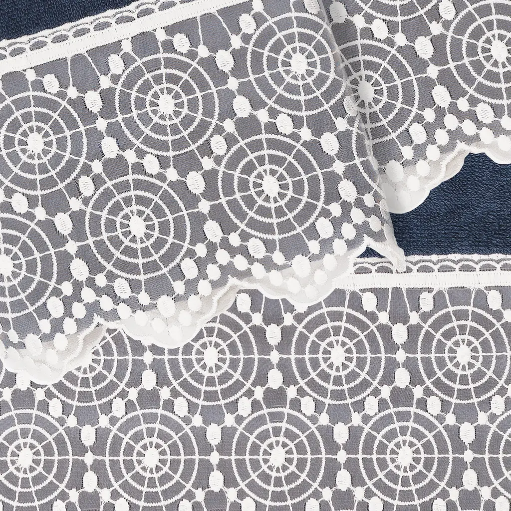 Authentic Hotel And Spa 100% Turkish Cotton Arian 3Pc Cream Lace Embellished Towel Set - Navy