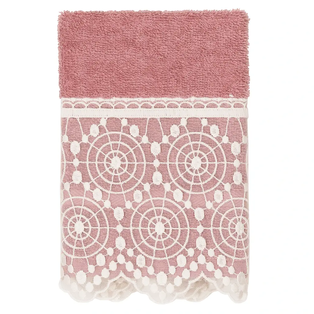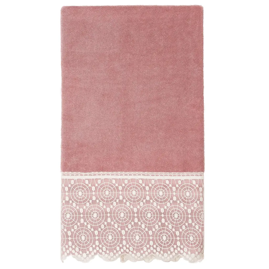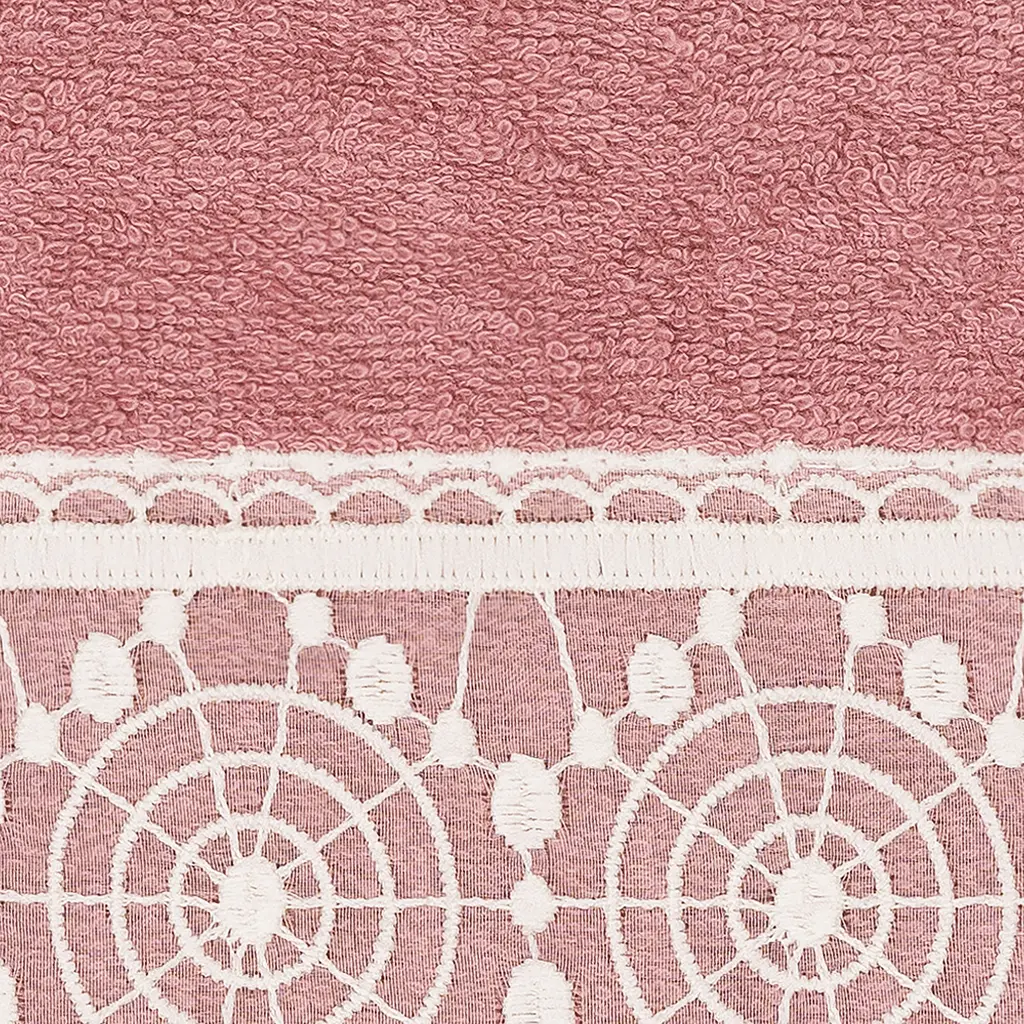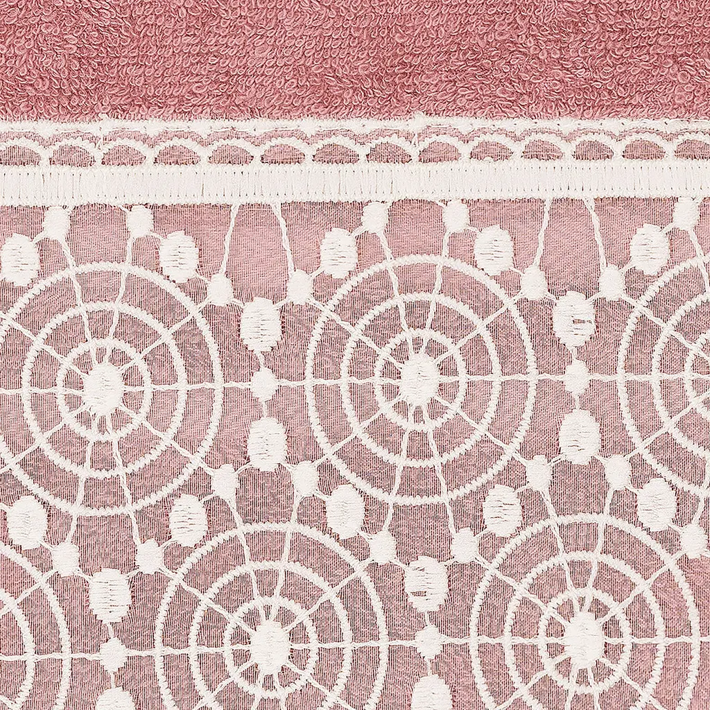 Authentic Hotel And Spa 100% Turkish Cotton Arian 3Pc Cream Lace Embellished Towel Set - Tea Rose