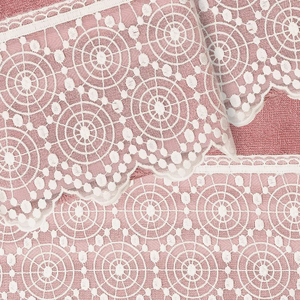 Authentic Hotel And Spa 100% Turkish Cotton Arian 3Pc Cream Lace Embellished Towel Set - Tea Rose
