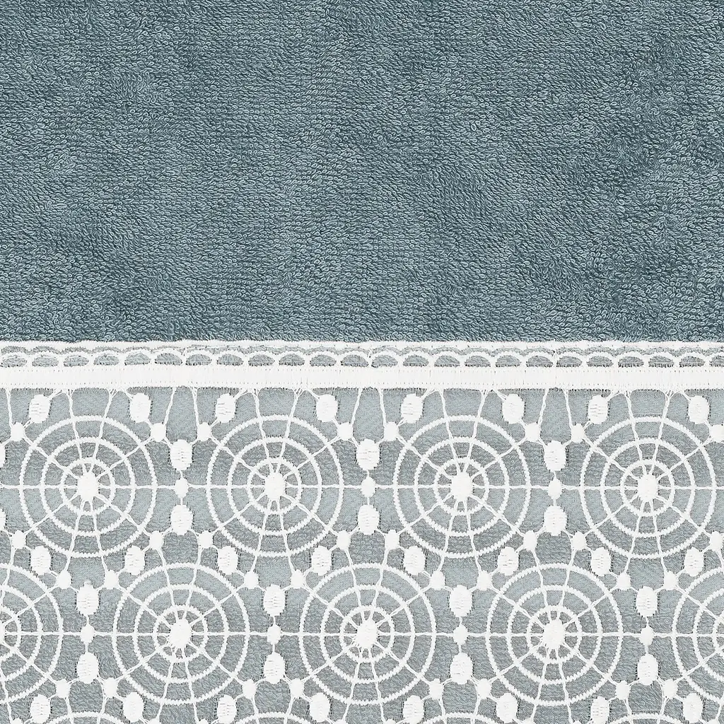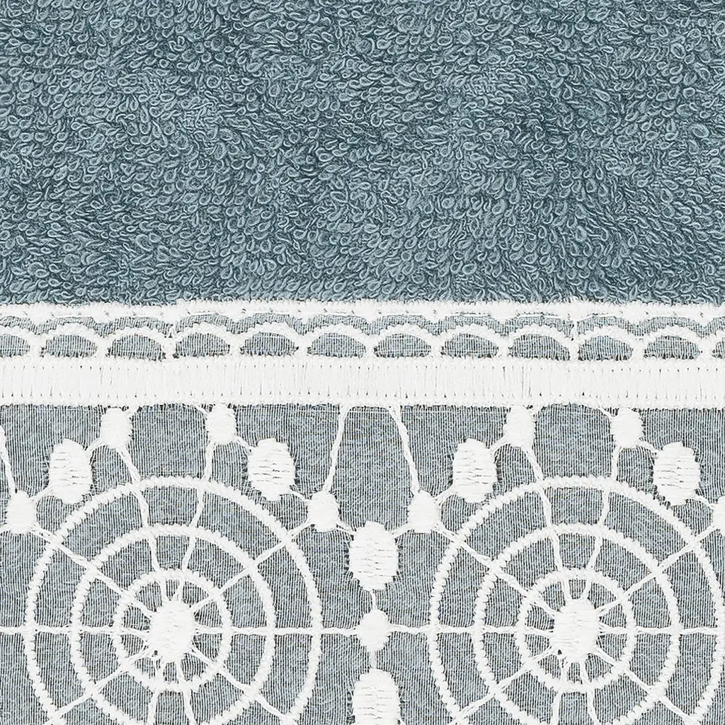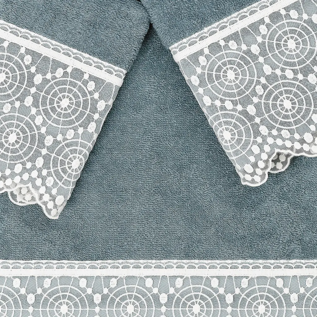 Authentic Hotel And Spa 100% Turkish Cotton Arian 3Pc Cream Lace Embellished Towel Set - Teal