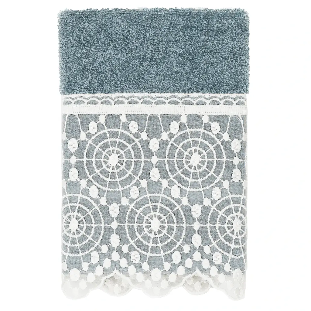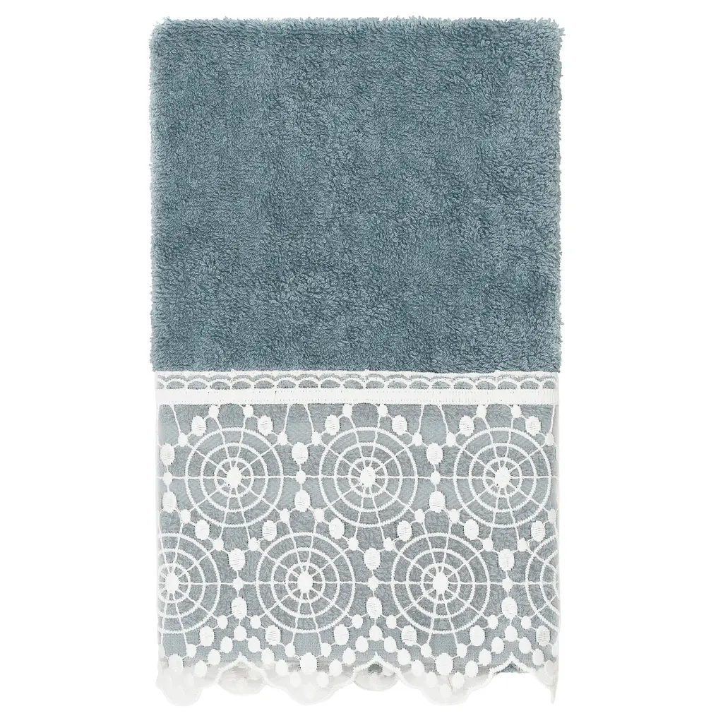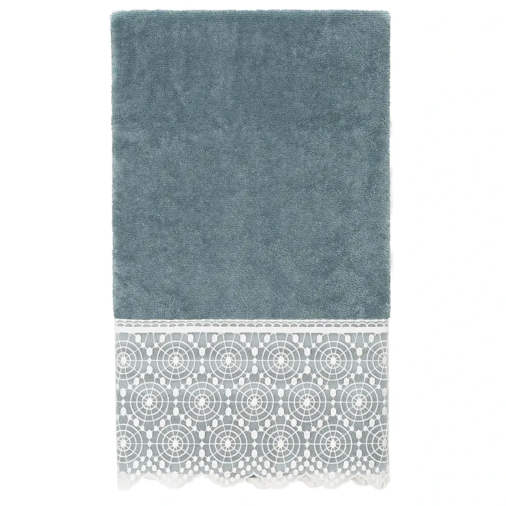 Authentic Hotel And Spa 100% Turkish Cotton Arian 3Pc Cream Lace Embellished Towel Set - Teal