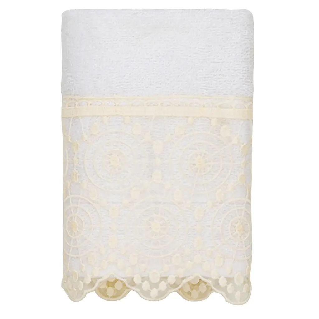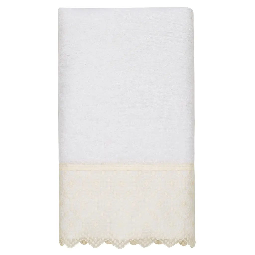 Authentic Hotel And Spa 100% Turkish Cotton Arian 3Pc Cream Lace Embellished Towel Set - White