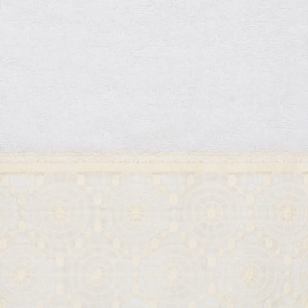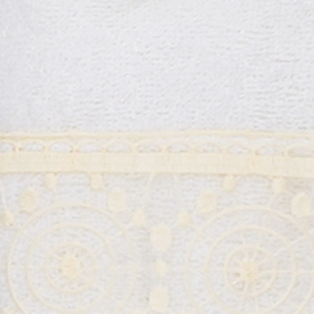 The Arian Lace Towel Collection by Authentic Hotel and Spa features an elegant circles motif, embroidered on a cream organza lace border with scalloped bottom edge. These soft and luxurious towels are made of 100% premium Turkish Cotton and offer lasting absorbency and superior durability. The Arian Lace Collection will bring a sophisticated note to your bath decor.100% Premium Turkish CottonSuperbly absorbent and quick dryingAvailable in a range of lovely towel colorsMachine wash cold, No bleach, line dry or dry cleanSet includes 1 bath towel (27" x 54") / 1 hand towel (16" x 30") / 1 washcloth (13" x 13")Made in TurkeyProudly Embellished in USA