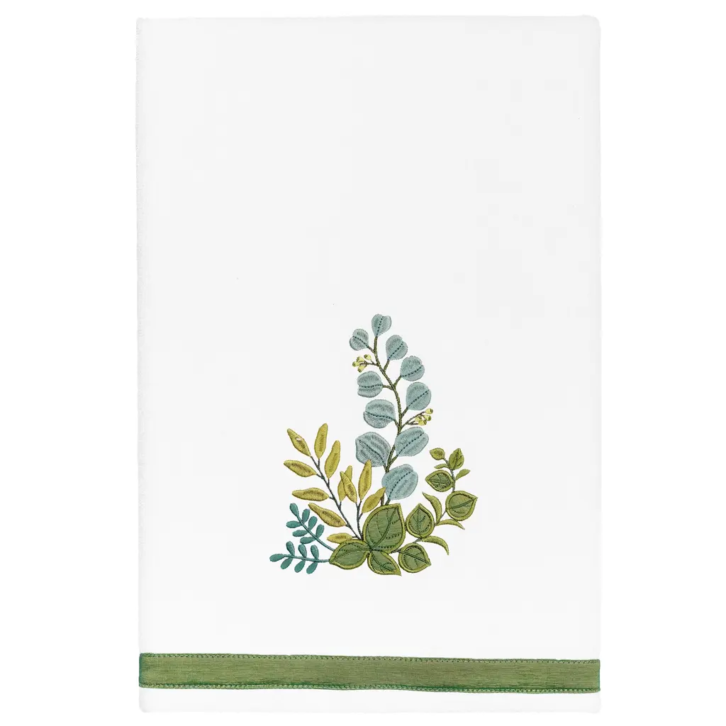 Create a mood of fresh charm in your bath with the Botanica Embellished Towel Collection by Authentic Hotel and Spa. These towels feature an applique embroidered bouquet with branches of lush foliage. Cloud soft and super absorbent, these luxurious, durable towels keep their plush appearance after washing. This collection is available in 8 elegant colors: White, Beige, Blush, Aqua, Silver, Cocoa, Charcoal and Marine. The Botanica Towel Collection brings a vibrant spirit and richness to your bath decor and makes a great gift! Note: Due to variations in computer screen resolutions, slight color differences may exist between images provided and actual product.Embroidered Foliage design100% Premium Turkish CottonSuperbly absorbent and quick dryingAvailable in 8 elegant colorsMachine wash cold, No bleach, line dry or dry cleanSet includes 2 bath towels (27" x 54")Made in TurkeyProudly Embellished in USA