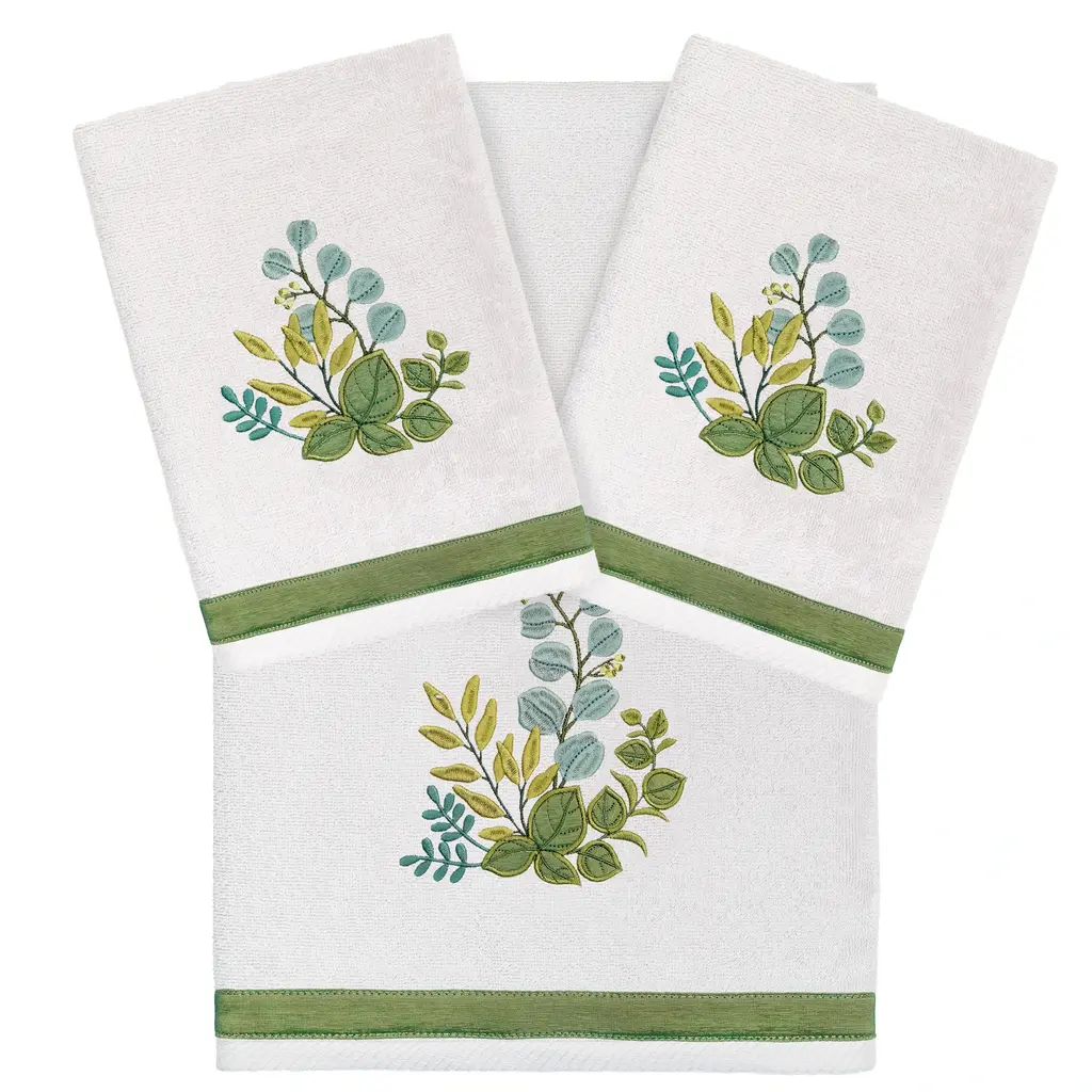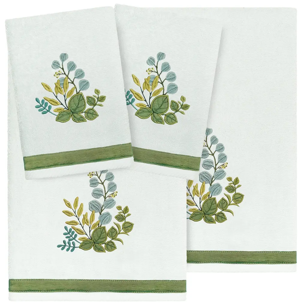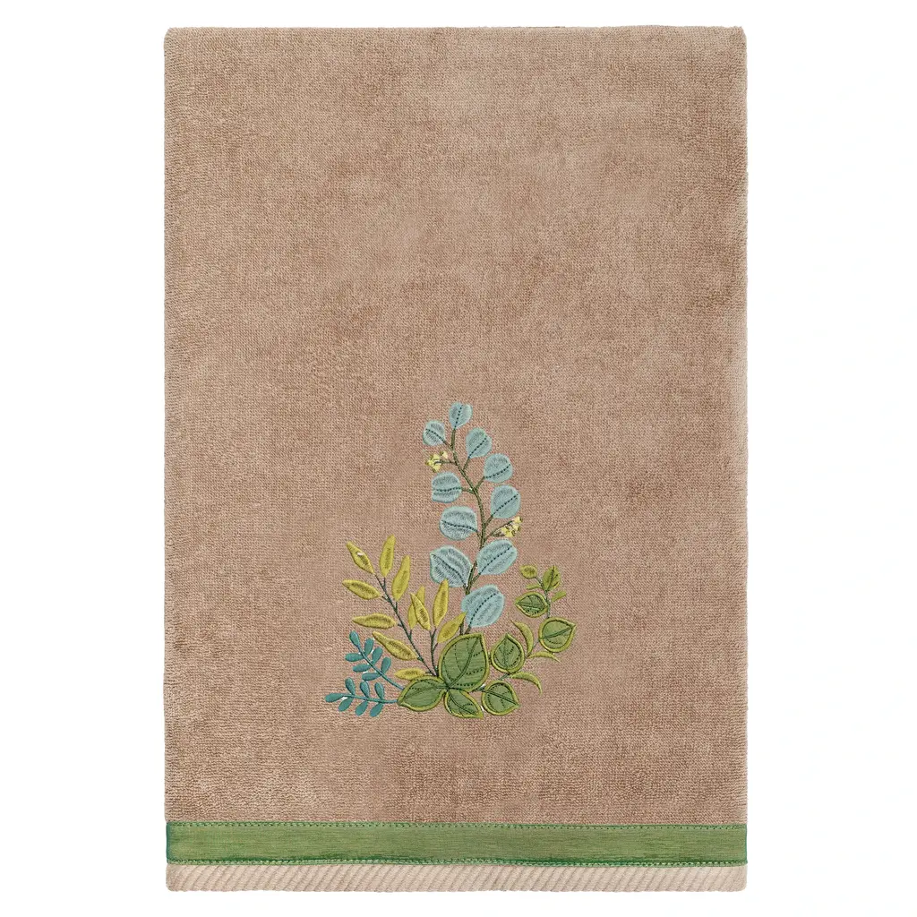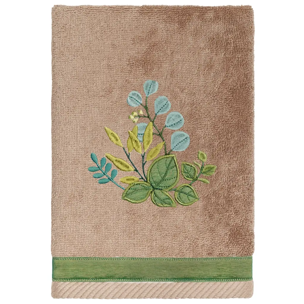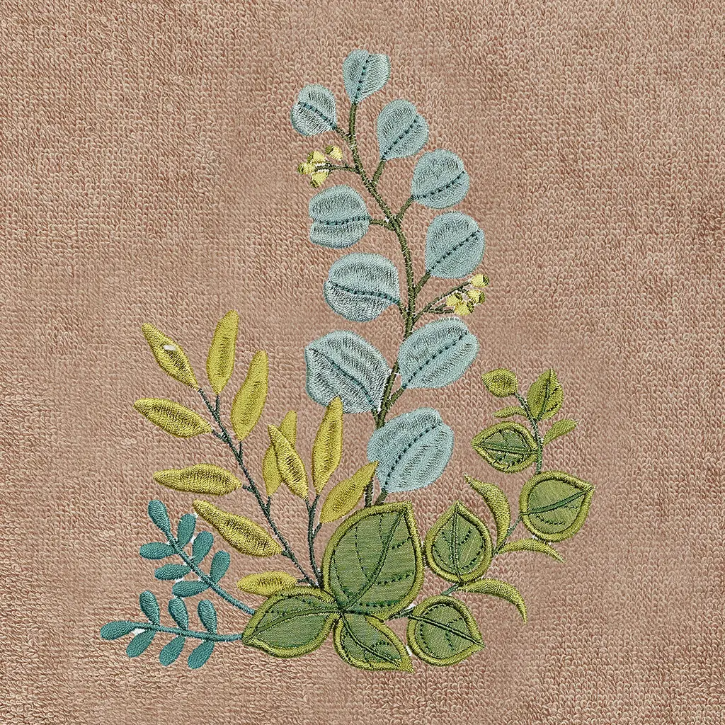 Create a mood of fresh charm in your bath with the Botanica Embellished Towel Collection by Authentic Hotel and Spa. These towels feature an applique embroidered bouquet with branches of lush foliage. Cloud soft and super absorbent, these luxurious, durable towels keep their plush appearance after washing. This collection is available in 8 elegant colors: White, Beige, Blush, Aqua, Silver, Cocoa, Charcoal and Marine. The Botanica Towel Collection brings a vibrant spirit and richness to your bath decor and makes a great gift! Note: Due to variations in computer screen resolutions, slight color differences may exist between images provided and actual product.Embroidered Foliage design100% Premium Turkish CottonSuperbly absorbent and quick dryingAvailable in 8 elegant colorsMachine wash cold, No bleach, line dry or dry cleanSet includes 1 bath towel (27" x 54") / 1 hand towel (16" x 30") / 1 fingertip towel (11" x 18")Made in TurkeyProudly Embellished in USA