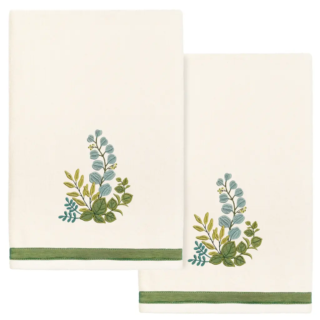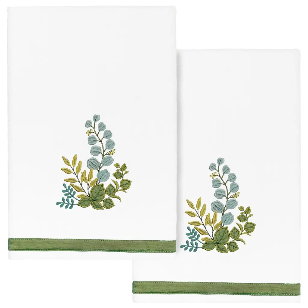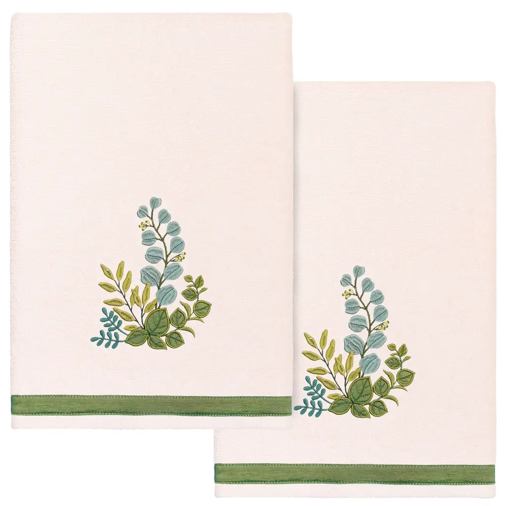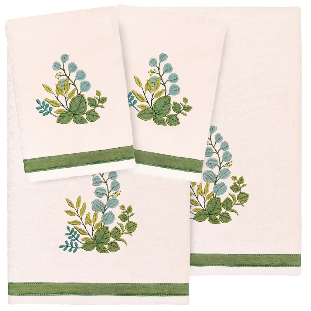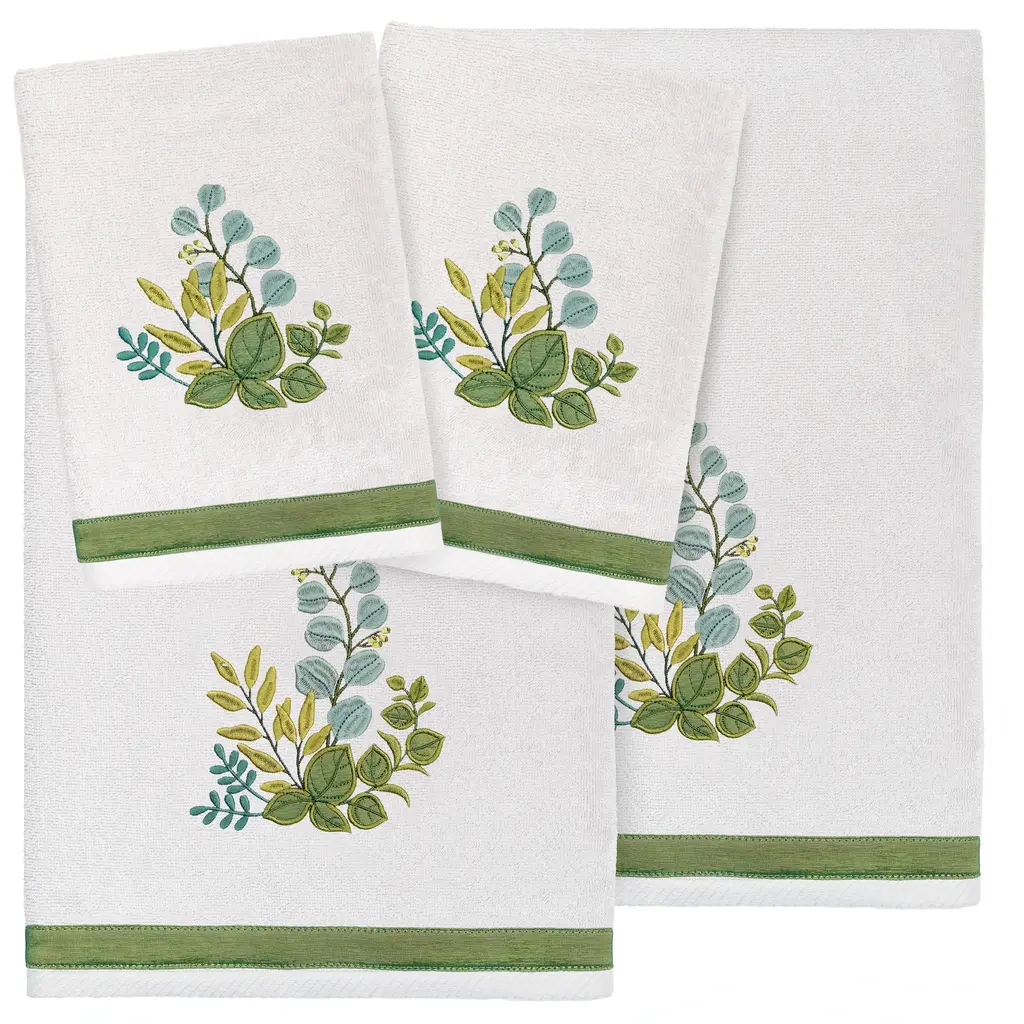 Create a mood of fresh charm in your bath with the Botanica Embellished Towel Collection by Authentic Hotel and Spa. These towels feature an applique embroidered bouquet with branches of lush foliage. Cloud soft and super absorbent, these luxurious, durable towels keep their plush appearance after washing. This collection is available in 8 elegant colors: White, Beige, Blush, Aqua, Silver, Cocoa, Charcoal and Marine. The Botanica Towel Collection brings a vibrant spirit and richness to your bath decor and makes a great gift! Note: Due to variations in computer screen resolutions, slight color differences may exist between images provided and actual product.Embroidered Foliage design100% Premium Turkish CottonSuperbly absorbent and quick dryingAvailable in 8 elegant colorsMachine wash cold, No bleach, line dry or dry cleanSet includes 1 bath towel (27" x 54") / 1 hand towel (16" x 30") / 1 fingertip towel (11" x 18")Made in TurkeyProudly Embellished in USA