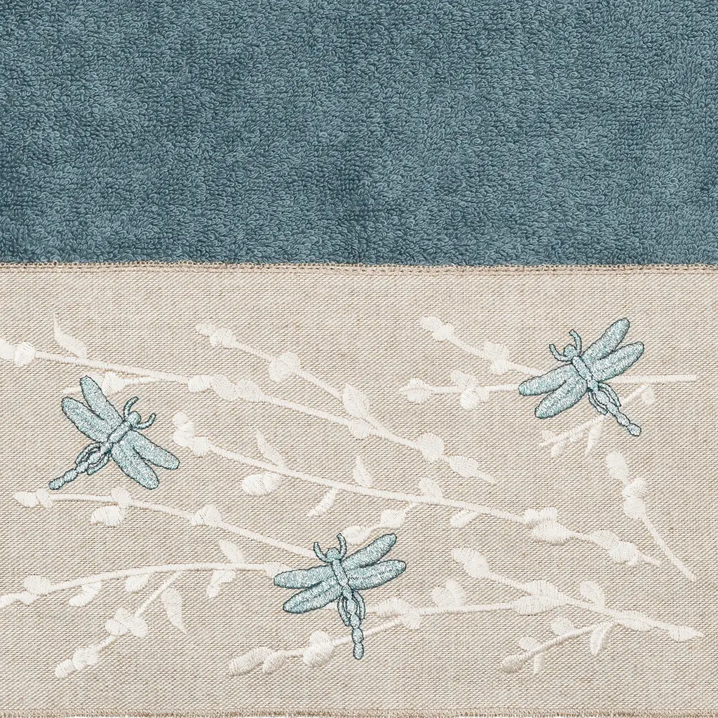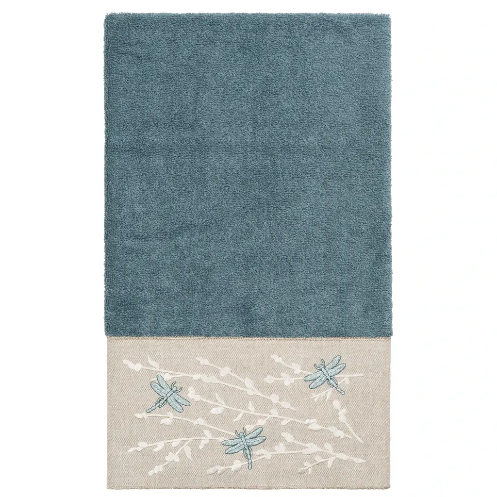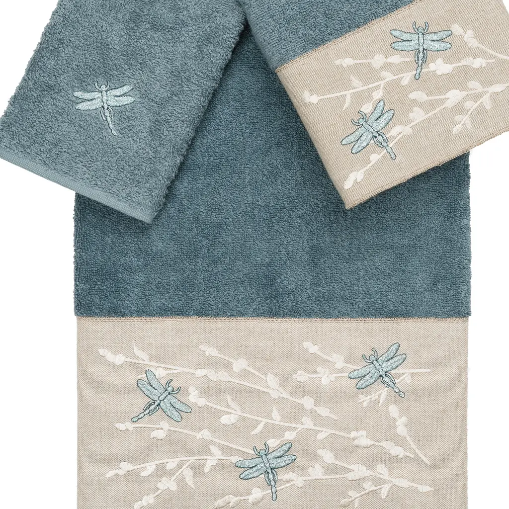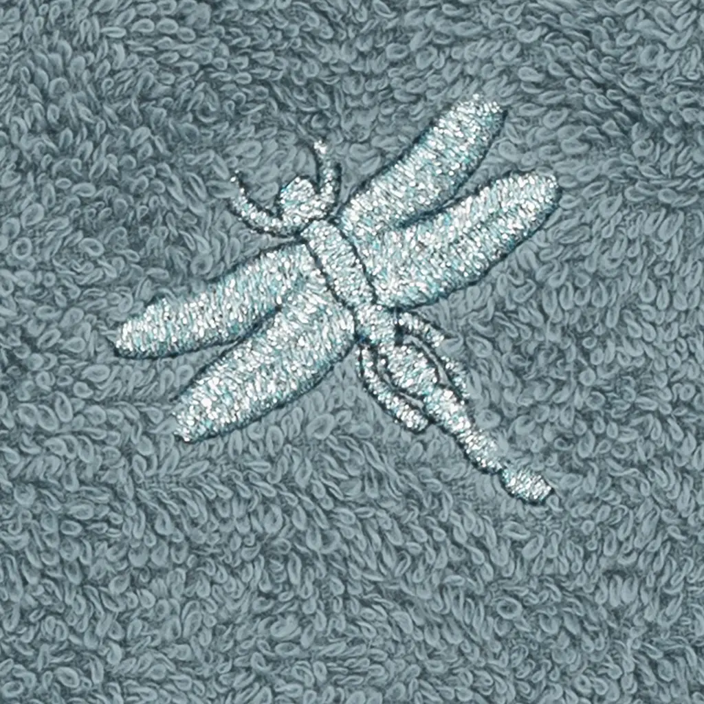 The Braelyn Embellished Towel Collection features glittering dragonflies flying among delicate branches embroidered on a linen-look textured woven cloth border. These soft and luxurious towels are made of 100% premium Turkish Cotton and offer lasting absorbency and superior durability.100% Premium Turkish Cotton Superbly absorbent and quick drying Available in a range of lovely towel colors Machine wash cold, No bleach, line dry or dry clean Set includes 1 bath towel (27" x 54") / 1 hand towel (16" x 30") / 1 washcloth (13" x 13") Made in Turkey Proudly Embellished in USA
