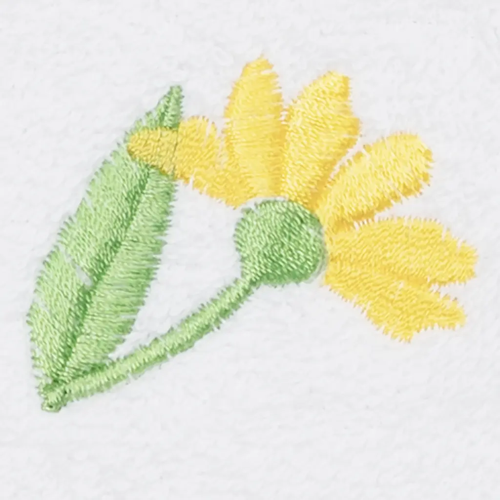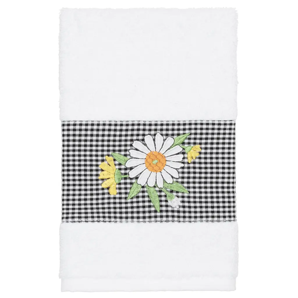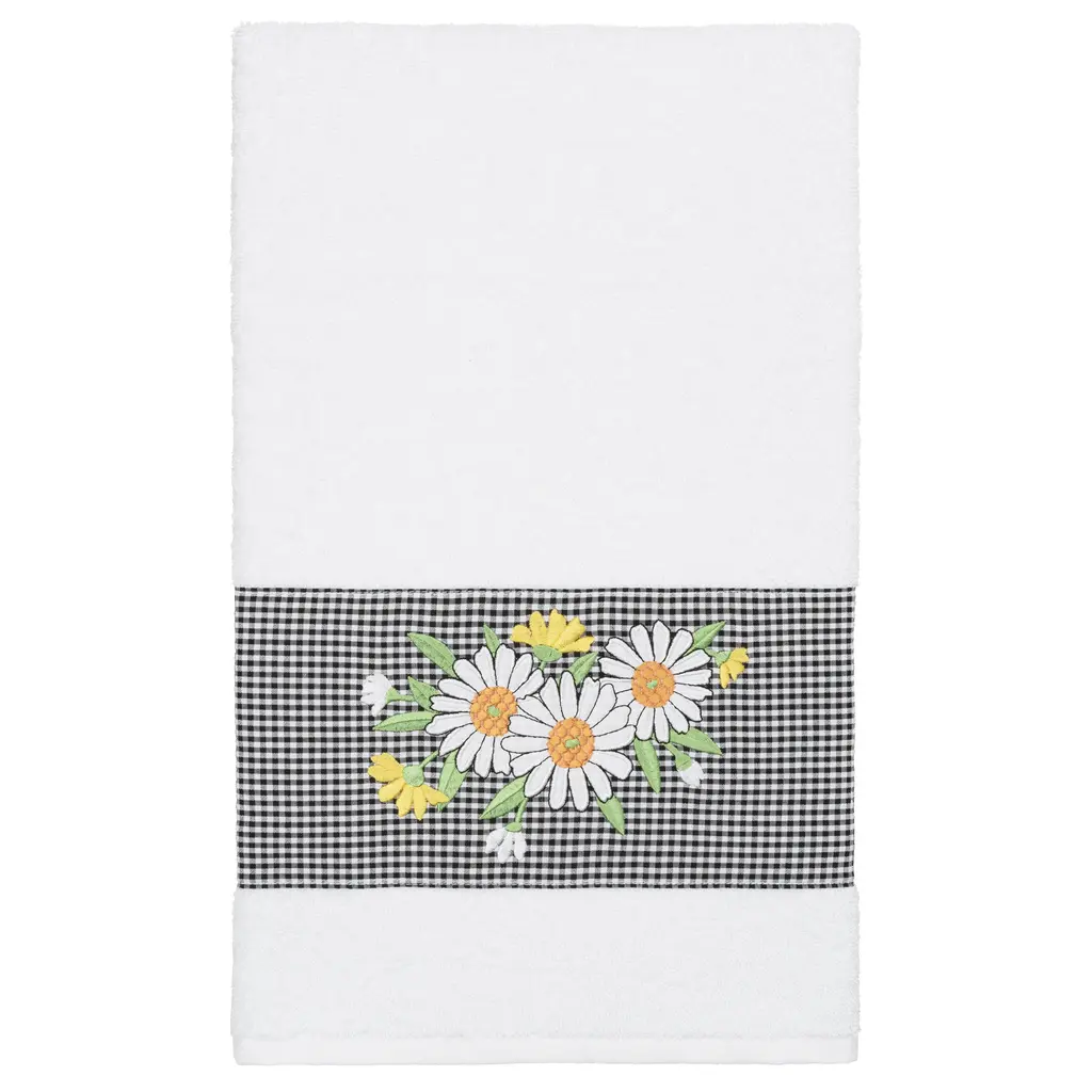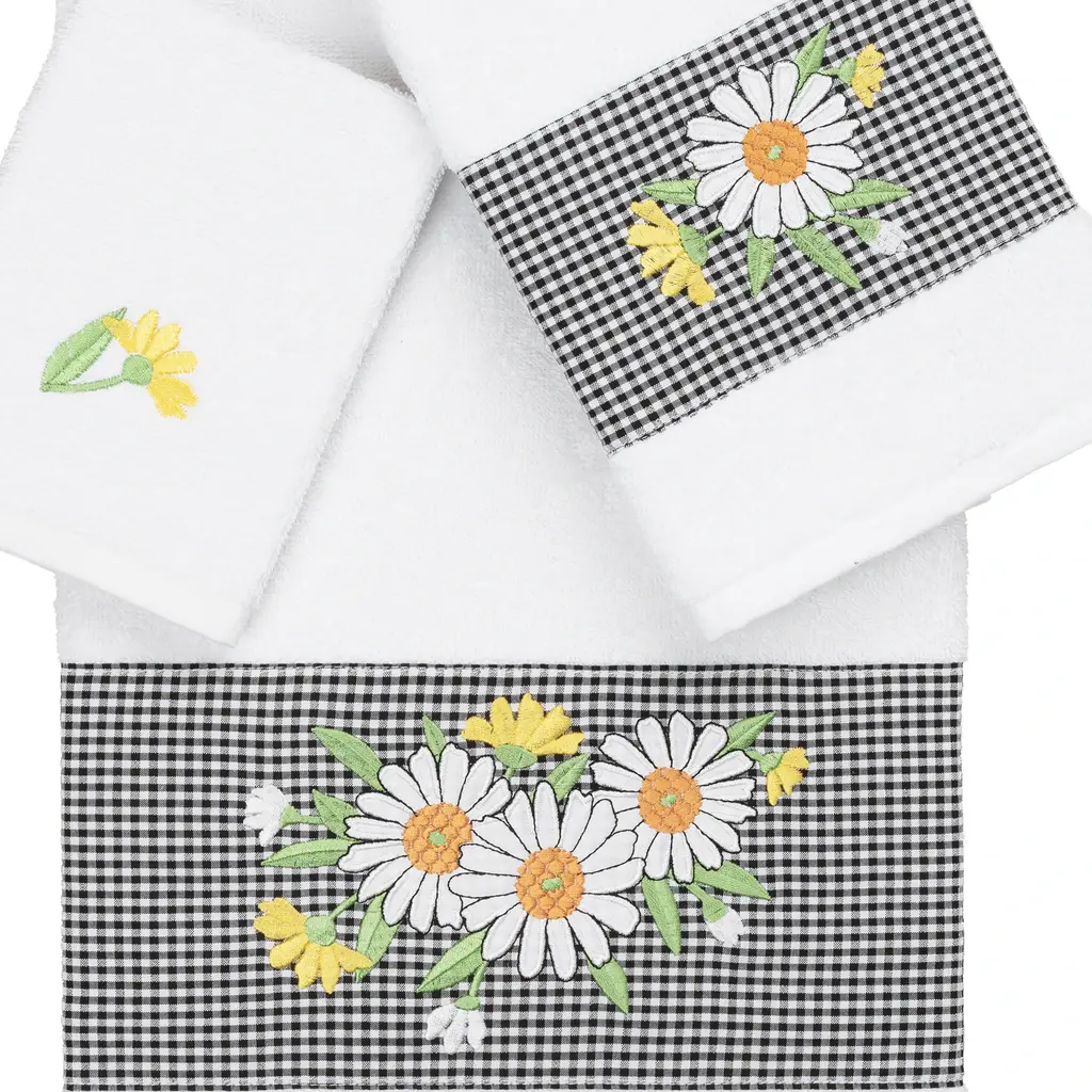 The Daisy Embellished Towel Collection features a fresh bouquet embroidered on a textured gingham check cloth border. These soft and luxurious towels are made of 100% premium Turkish Cotton and offer lasting absorbency and superior durability.100% Premium Turkish Cotton Superbly absorbent and quick drying Available in a range of lovely towel colors Machine wash cold, No bleach, line dry or dry clean Set includes 1 bath towel (27" x 54") / 1 hand towel (16" x 30") / 1 washcloth (13" x 13") Made in Turkey Proudly Embellished in USA