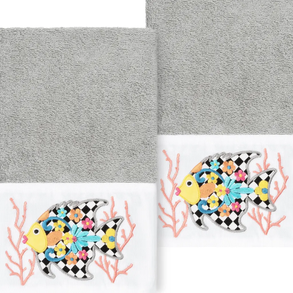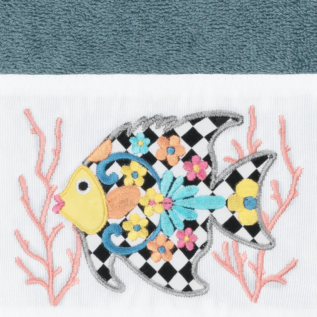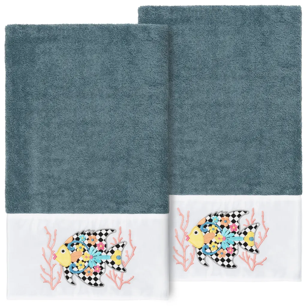 The Feliz Embellished Towel Collection by Authentic Hotel and Spa features a colorful and festive applique fish motif, embroidered on a lustrous ribbed texture cloth border. These soft and luxurious towels are made of 100% premium Turkish Cotton and offer lasting absorbency and superior durability.100% Premium Turkish CottonSuperbly absorbent and quick dryingAvailable in a range of lovely towel colorsMachine wash cold, No bleach, line dry or dry cleanSet includes 2 hand towels (16" x 30")Made in TurkeyProudly Embellished in USA