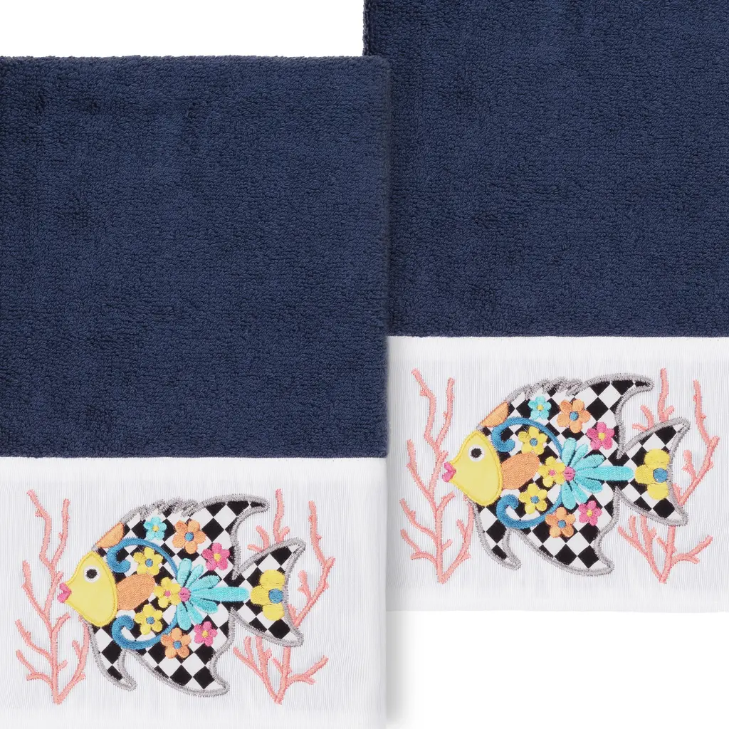 The Feliz Embellished Towel Collection by Authentic Hotel and Spa features a colorful and festive applique fish motif, embroidered on a lustrous ribbed texture cloth border. These soft and luxurious towels are made of 100% premium Turkish Cotton and offer lasting absorbency and superior durability.100% Premium Turkish CottonSuperbly absorbent and quick dryingAvailable in a range of lovely towel colorsMachine wash cold, No bleach, line dry or dry cleanSet includes 2 hand towels (16" x 30")Made in TurkeyProudly Embellished in USA
