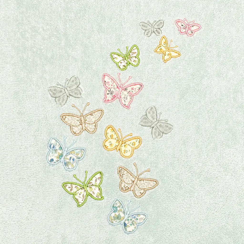 Your decorations are not complete without exquisite embroidered towels for the comfort of your family and guests. The Mariposa towels feature calico applique butterflies and are trimmed with a calico border. Cloud soft and super absorbent, these luxurious, durable towels keep their plush appearance after washing. The Mariposa Towel Collection brings a cottage spirit and richness to your home decor and makes a great gift!Embroidered Butterfly design 100% Premium Turkish Cotton Superbly absorbent and quick drying Available in a range of lovely towel colors Machine wash cold, No bleach, line dry or dry clean Set includes 2 bath towels (27" x 54") Made in Turkey Proudly Embellished in USA