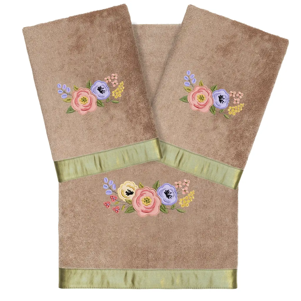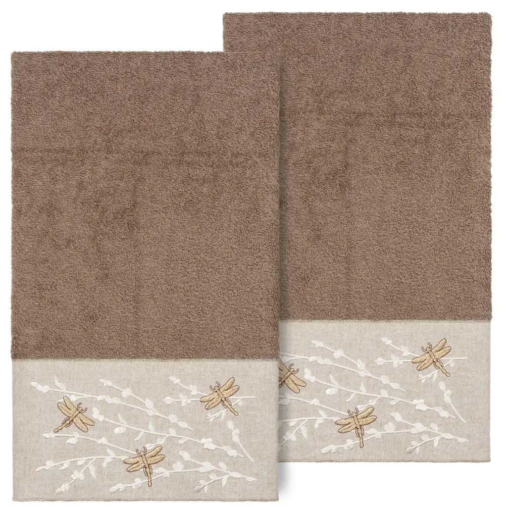 Authentic Hotel And Spa 100% Turkish Cotton Mariposa 2Pc Embellished Bath Towel Set - Cocoa