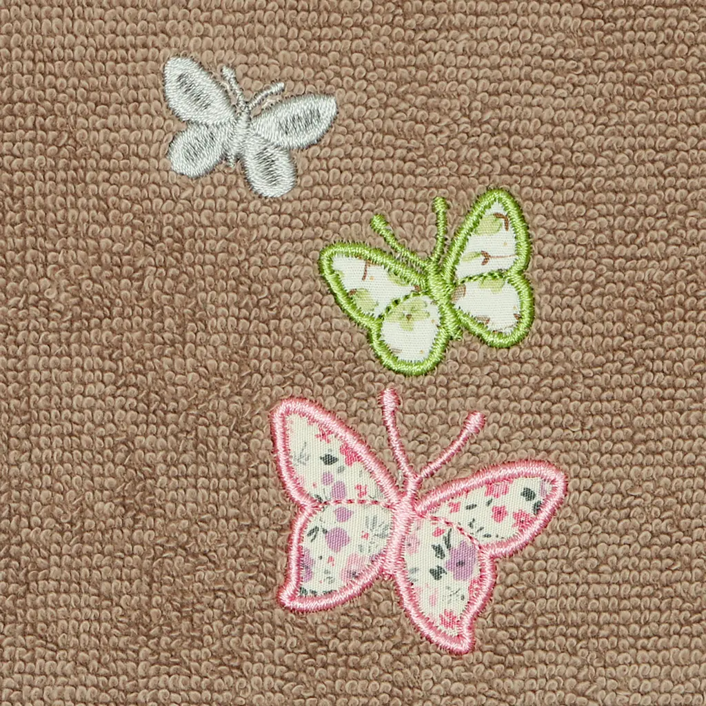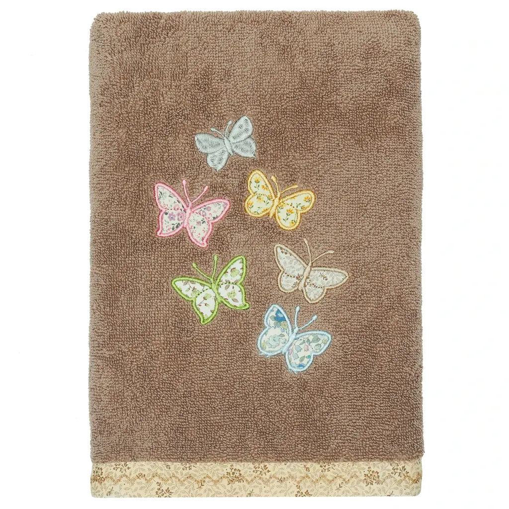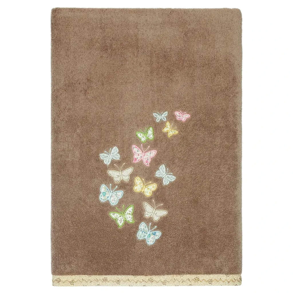 Your decorations are not complete without exquisite embroidered towels for the comfort of your family and guests. The Mariposa towels feature calico applique butterflies and are trimmed with a calico border. Cloud soft and super absorbent, these luxurious, durable towels keep their plush appearance after washing. The Mariposa Towel Collection brings a cottage spirit and richness to your home decor and makes a great gift!Embroidered Butterfly design 100% Premium Turkish Cotton Superbly absorbent and quick drying Available in a range of lovely towel colors Machine wash cold, No bleach, line dry or dry clean Set includes 1 bath towel (27" x 54") / 1 hand towel (16" x 30") / 1 fingertip towel (11" x 18") Made in Turkey Proudly Embellished in USA