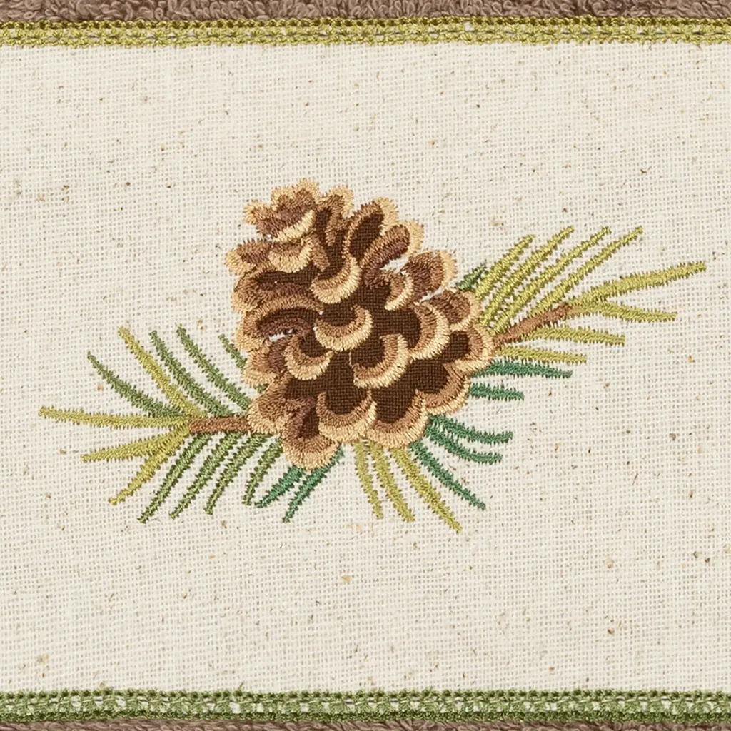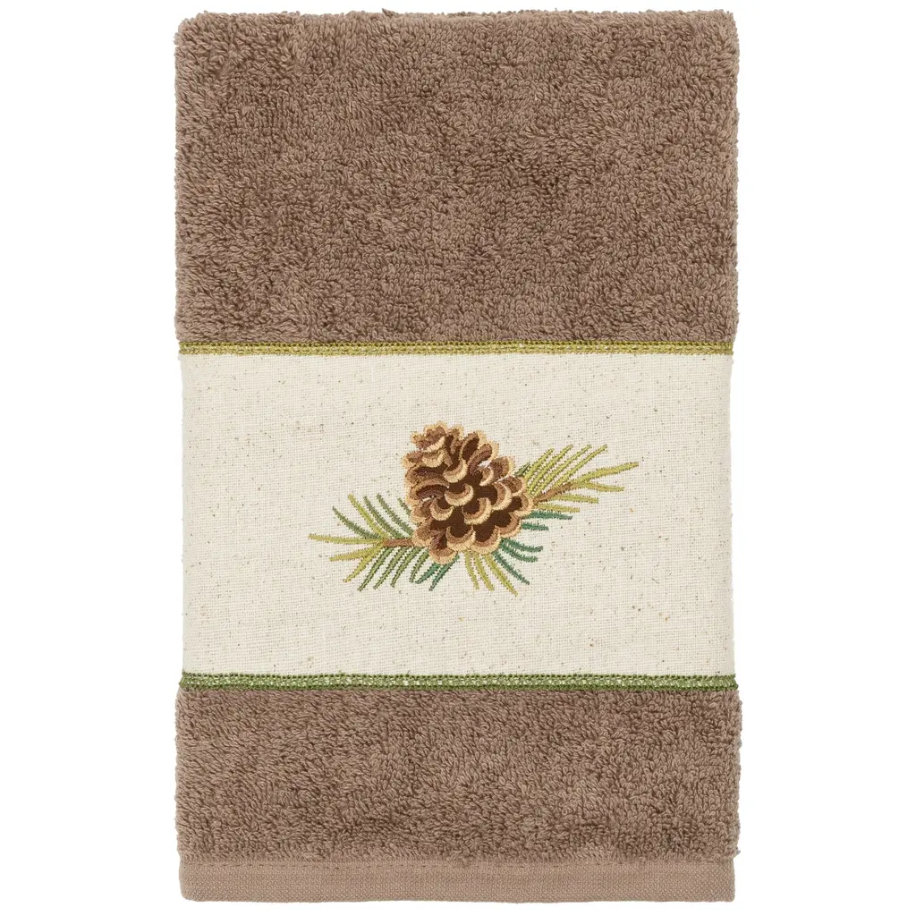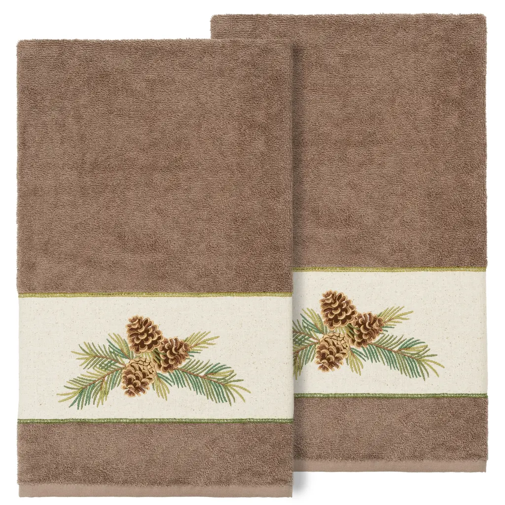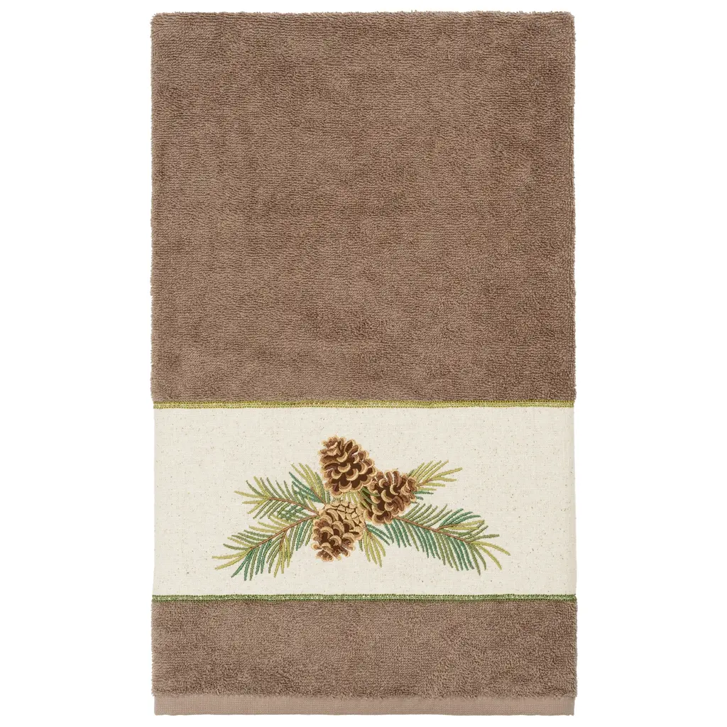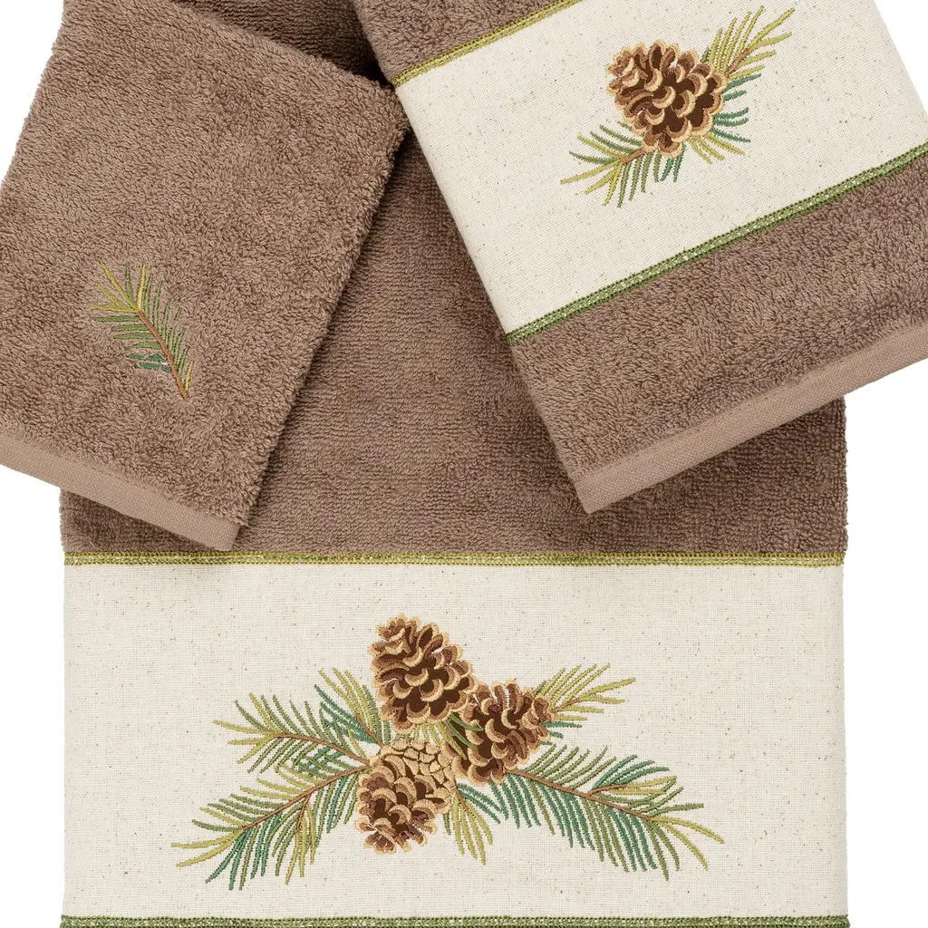 The Pierre Embellished Towel Collection by Authentic Hotel and Spa features a rustic pinecones on branches motif, embroidered on a natural cotton osnaburg cloth border. These soft and luxurious towels are made of 100% premium Turkish Cotton and offer lasting absorbency and superior durability.100% Premium Turkish Cotton Superbly absorbent and quick drying Available in a range of lovely towel colors Machine wash cold, No bleach, line dry or dry clean Set includes 1 bath towel (27" x 54") / 1 hand towel (16" x 30") / 1 washcloth (13" x 13") Made in Turkey Proudly Embellished in USA