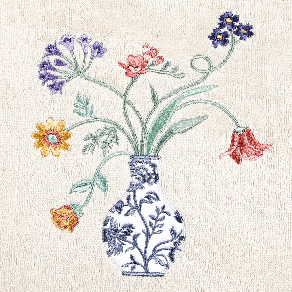 Your decorations are not complete without charming embroidered towels for the comfort of your family and guests. The Stella towels feature lovely flower stems in an applique blue & white vase and are trimmed with a lustrous bengaline border. Cloud soft and super absorbent, these luxurious, durable towels keep their plush appearance after washing. The Stella Towel Collection brings cottage spirit and richness to your home decor and makes a great gift!Embroidered Flower & Vase design 100% Premium Turkish Cotton Superbly absorbent and quick drying Available in a range of lovely towel colors Machine wash cold, No bleach, line dry or dry clean Set includes 2 bath towels (27" x 54") Made in Turkey Proudly Embellished in USA