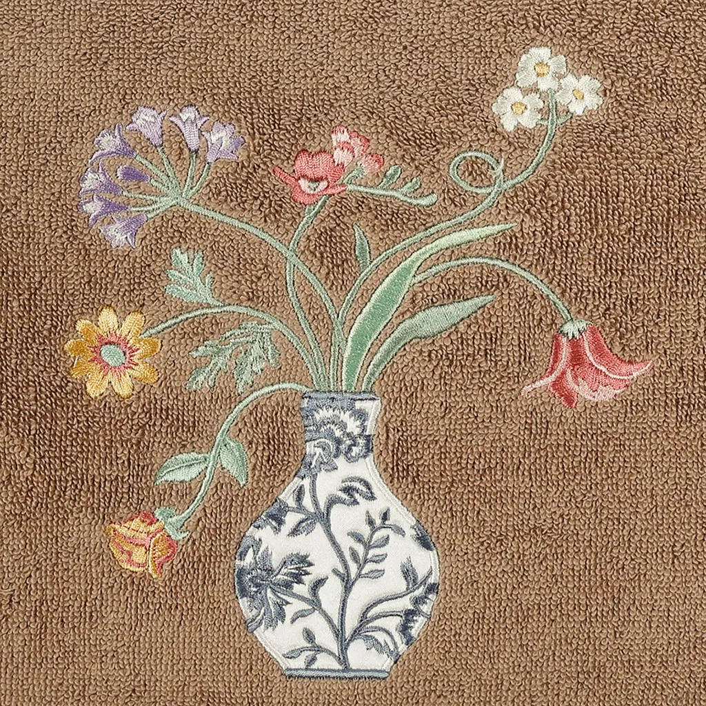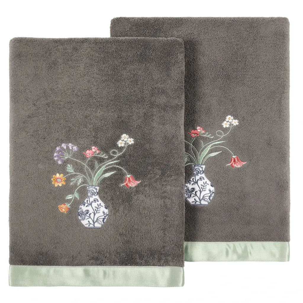 Your decorations are not complete without charming embroidered towels for the comfort of your family and guests. The Stella towels feature lovely flower stems in an applique blue & white vase and are trimmed with a lustrous bengaline border. Cloud soft and super absorbent, these luxurious, durable towels keep their plush appearance after washing. The Stella Towel Collection brings cottage spirit and richness to your home decor and makes a great gift!Embroidered Flower & Vase design 100% Premium Turkish Cotton Superbly absorbent and quick drying Available in a range of lovely towel colors Machine wash cold, No bleach, line dry or dry clean Set includes 2 bath towels (27" x 54") Made in Turkey Proudly Embellished in USA