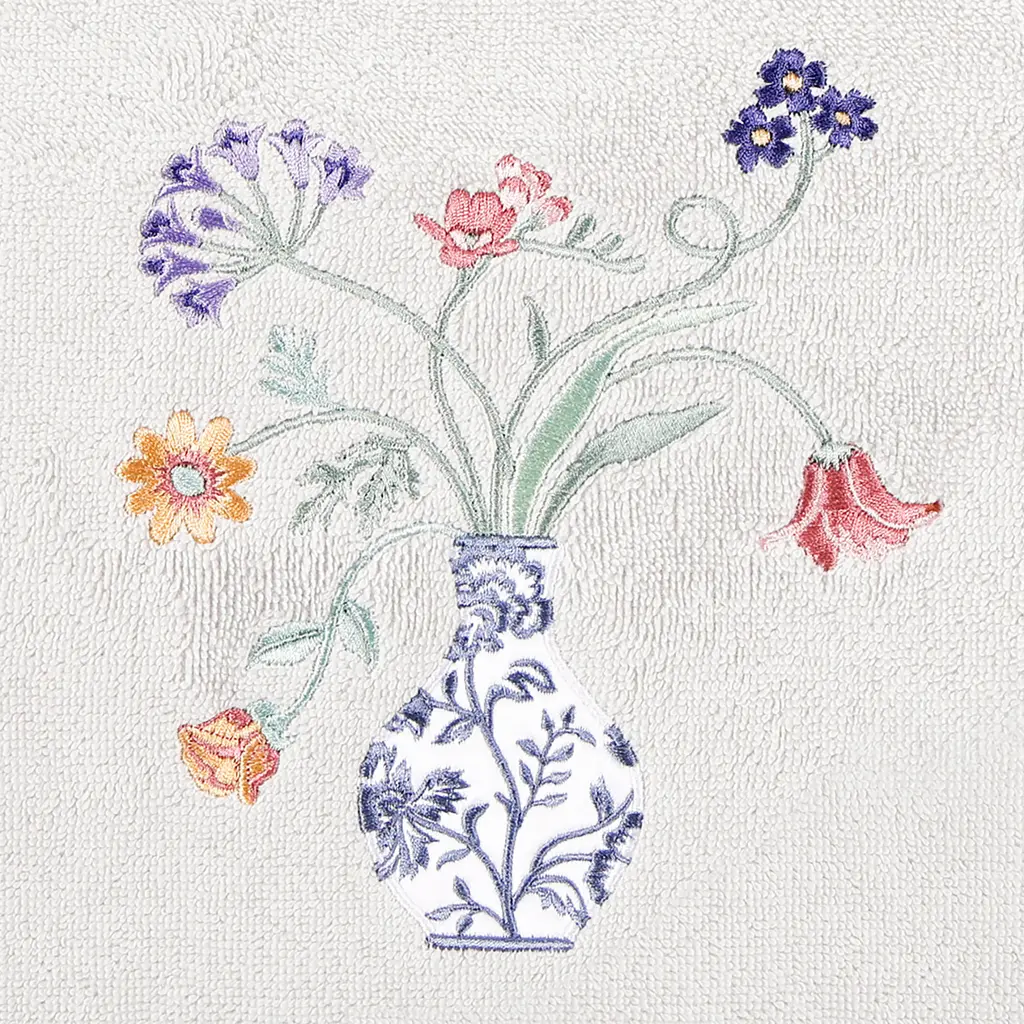 Your decorations are not complete without charming embroidered towels for the comfort of your family and guests. The Stella towels feature lovely flower stems in an applique blue & white vase and are trimmed with a lustrous bengaline border. Cloud soft and super absorbent, these luxurious, durable towels keep their plush appearance after washing. The Stella Towel Collection brings cottage spirit and richness to your home decor and makes a great gift!Embroidered Flower & Vase design 100% Premium Turkish Cotton Superbly absorbent and quick drying Available in a range of lovely towel colors Machine wash cold, No bleach, line dry or dry clean Set includes 2 bath towels (27" x 54") Made in Turkey Proudly Embellished in USA