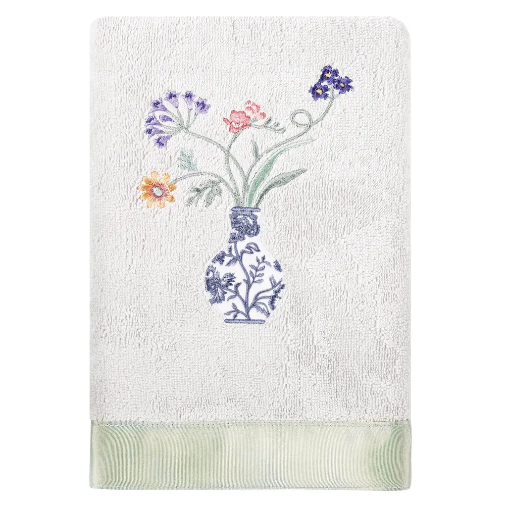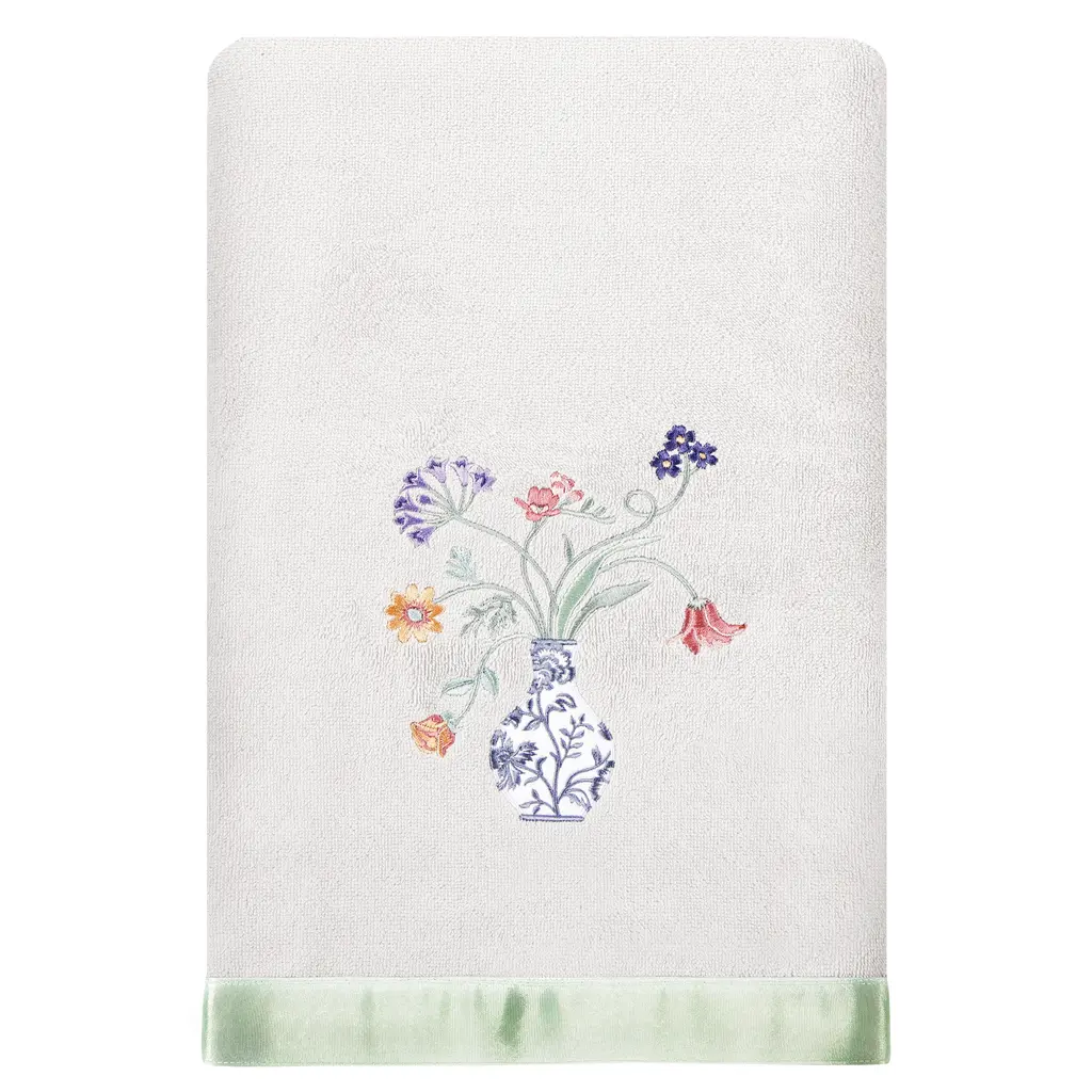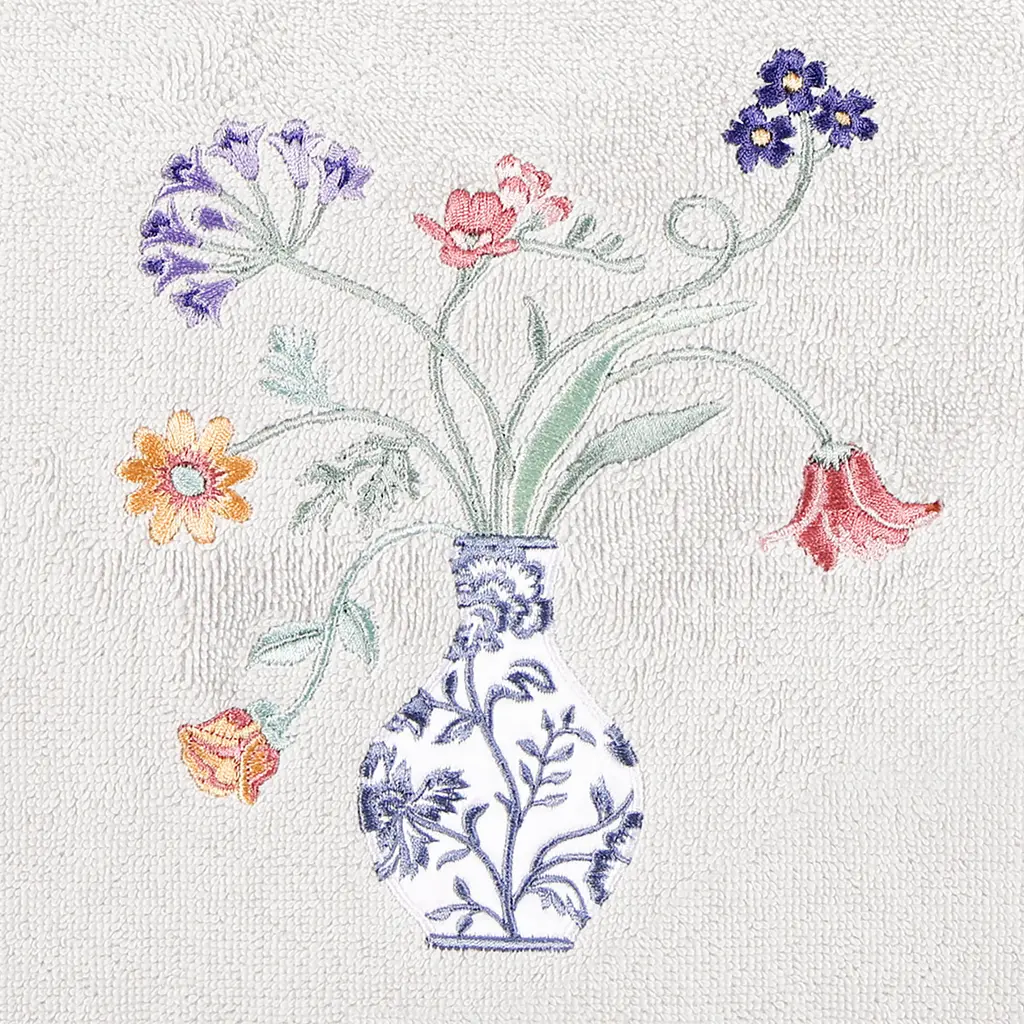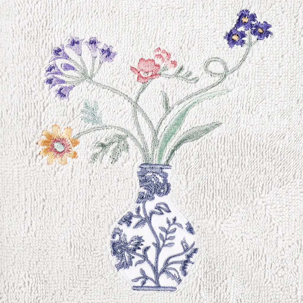 Your decorations are not complete without charming embroidered towels for the comfort of your family and guests. The Stella towels feature lovely flower stems in an applique blue & white vase and are trimmed with a lustrous bengaline border. Cloud soft and super absorbent, these luxurious, durable towels keep their plush appearance after washing. The Stella Towel Collection brings cottage spirit and richness to your home decor and makes a great gift!Embroidered Flower & Vase design 100% Premium Turkish Cotton Superbly absorbent and quick drying Available in a range of lovely towel colors Machine wash cold, No bleach, line dry or dry clean Set includes 1 bath towel (27" x 54") / 1 hand towel (16" x 30") / 1 fingertip towel (11" x 18") Made in Turkey Proudly Embellished in USA
