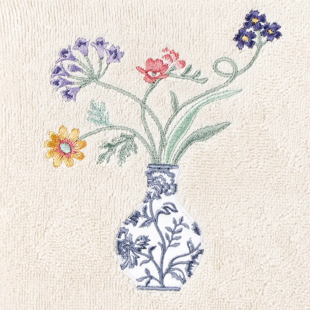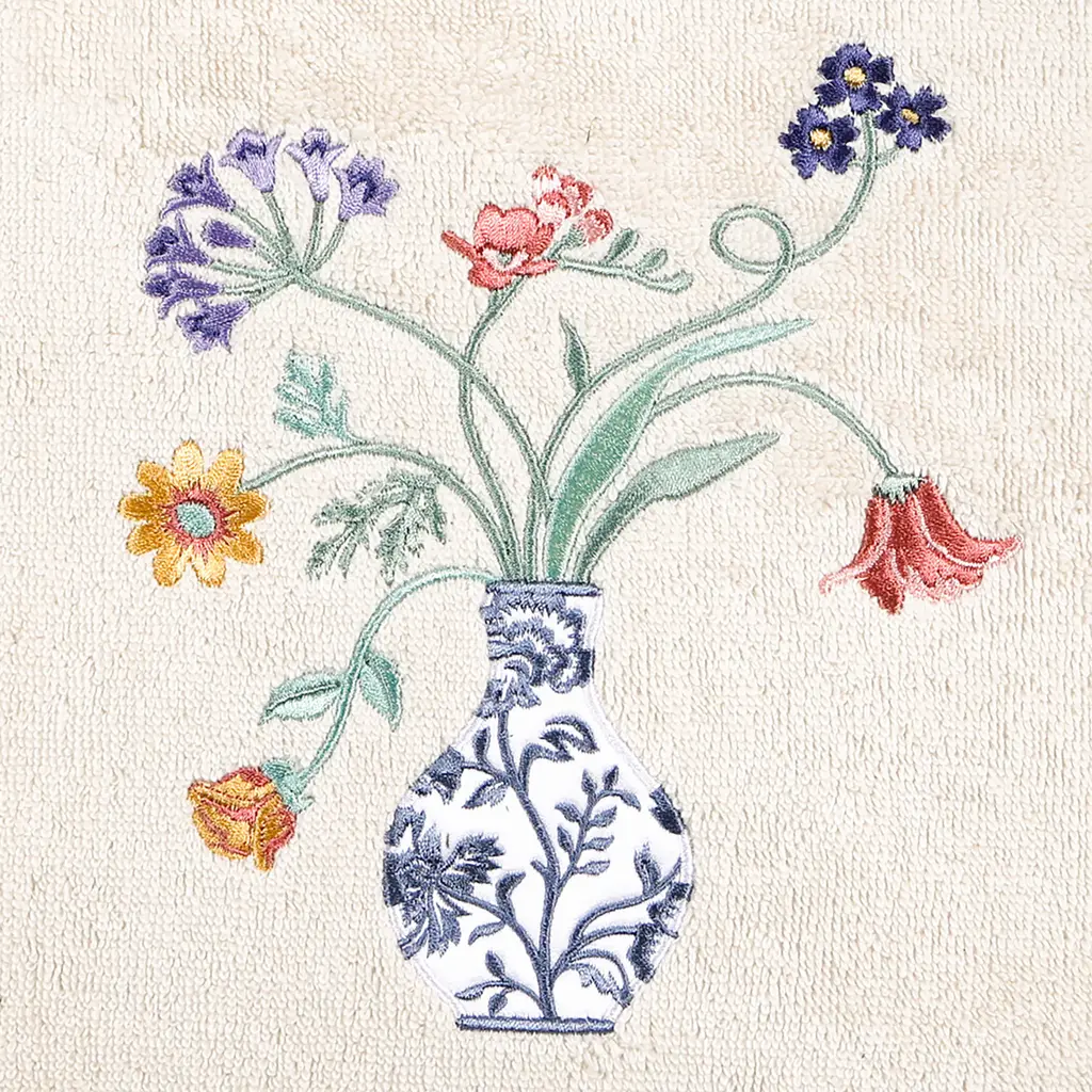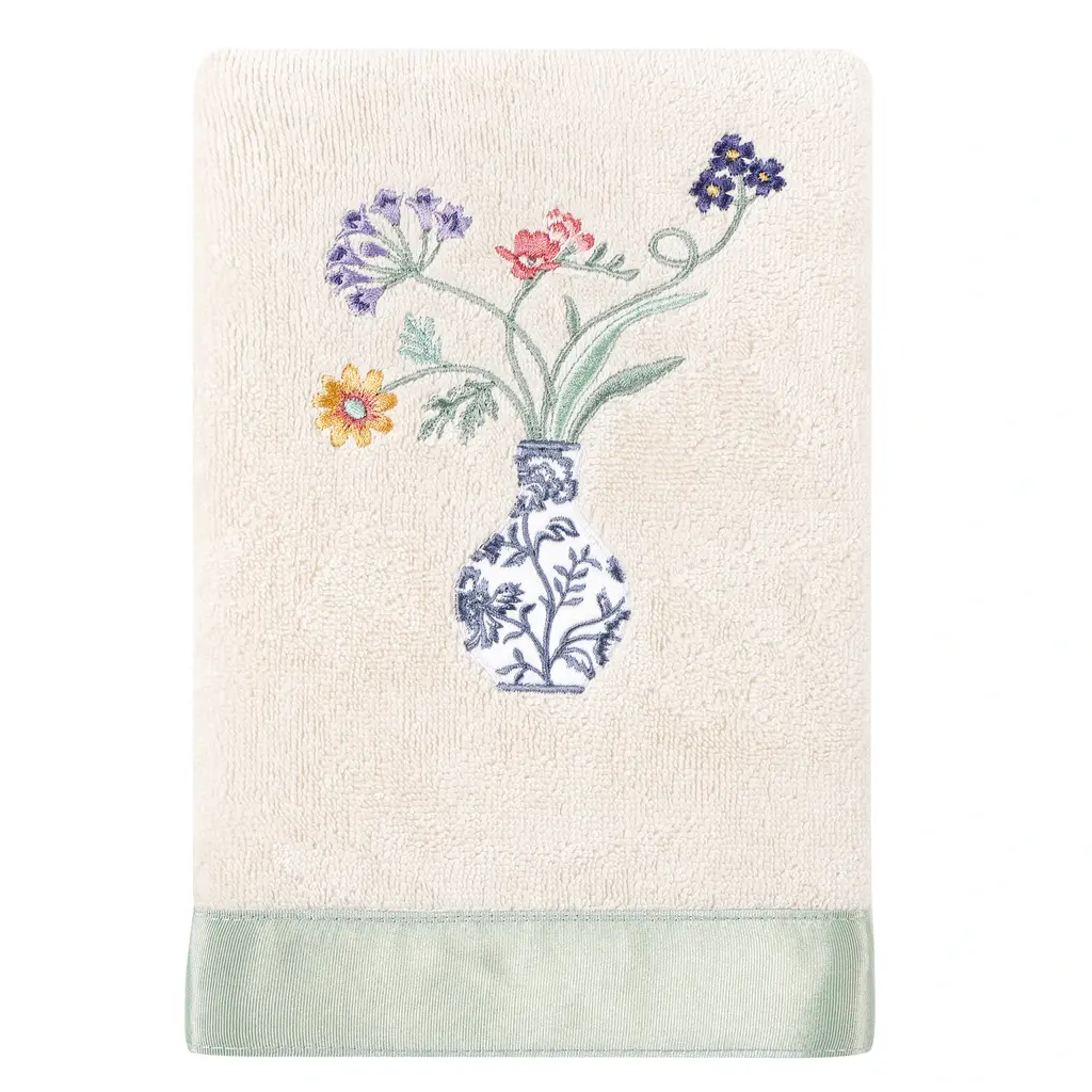 Your decorations are not complete without charming embroidered towels for the comfort of your family and guests. The Stella towels feature lovely flower stems in an applique blue & white vase and are trimmed with a lustrous bengaline border. Cloud soft and super absorbent, these luxurious, durable towels keep their plush appearance after washing. The Stella Towel Collection brings cottage spirit and richness to your home decor and makes a great gift!Embroidered Flower & Vase design 100% Premium Turkish Cotton Superbly absorbent and quick drying Available in a range of lovely towel colors Machine wash cold, No bleach, line dry or dry clean Set includes 2 bath towels (27" x 54") / 2 hand towels (16" x 30") Made in Turkey Proudly Embellished in USA