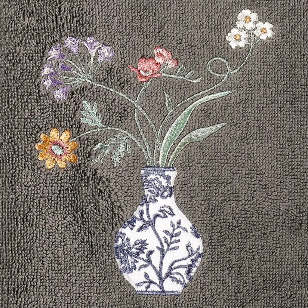 Your decorations are not complete without charming embroidered towels for the comfort of your family and guests. The Stella towels feature lovely flower stems in an applique blue & white vase and are trimmed with a lustrous bengaline border. Cloud soft and super absorbent, these luxurious, durable towels keep their plush appearance after washing. The Stella Towel Collection brings cottage spirit and richness to your home decor and makes a great gift!Embroidered Flower & Vase design 100% Premium Turkish Cotton Superbly absorbent and quick drying Available in a range of lovely towel colors Machine wash cold, No bleach, line dry or dry clean Set includes 2 bath towels (27" x 54") / 2 hand towels (16" x 30") Made in Turkey Proudly Embellished in USA