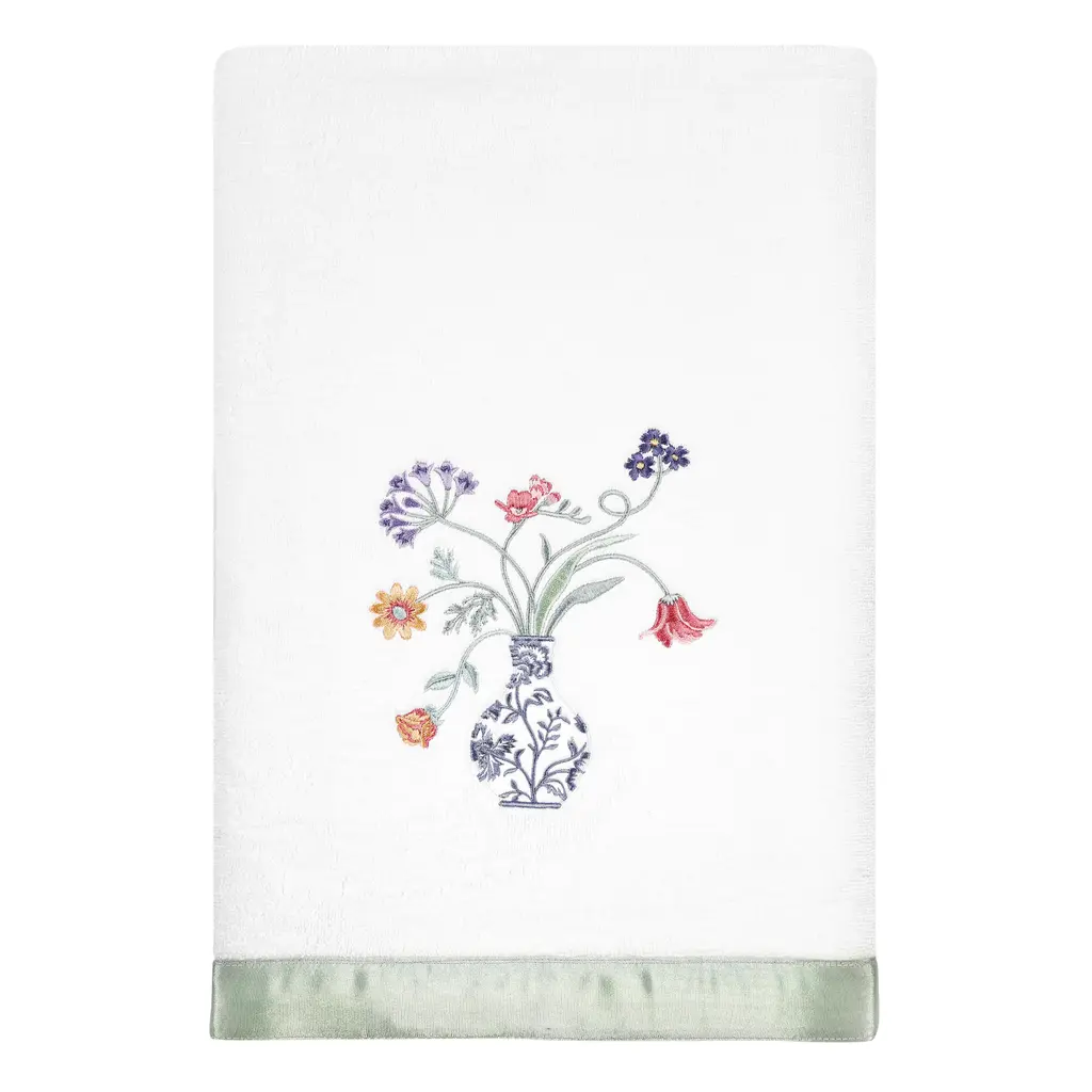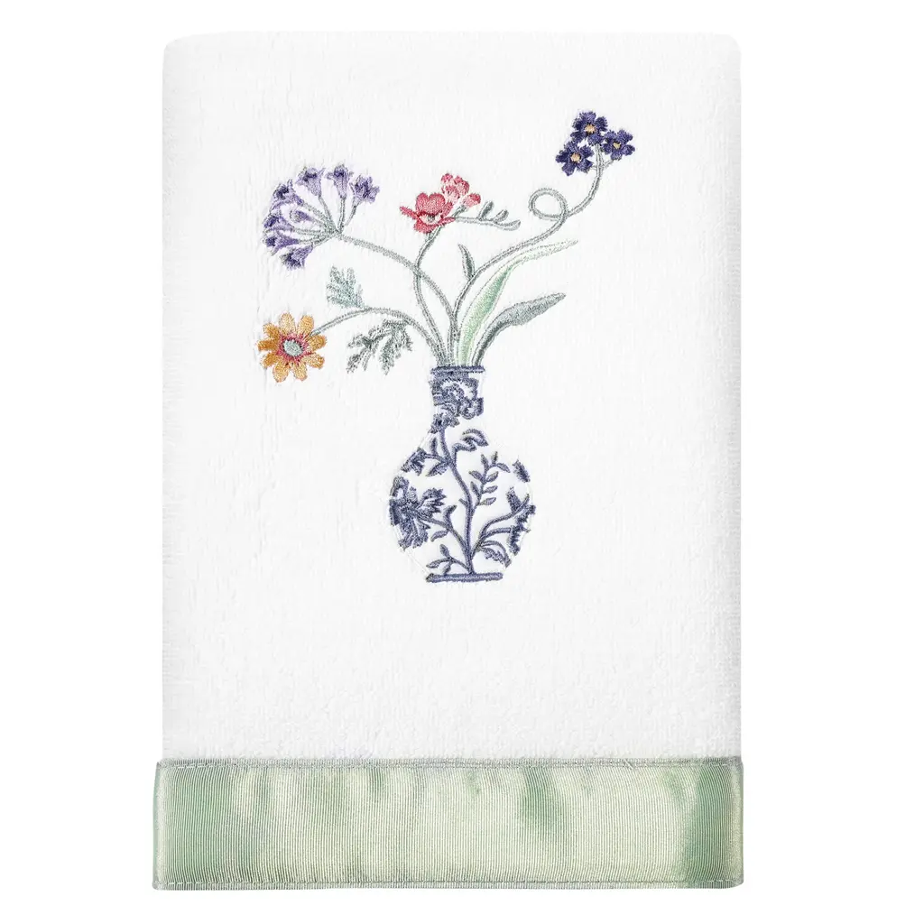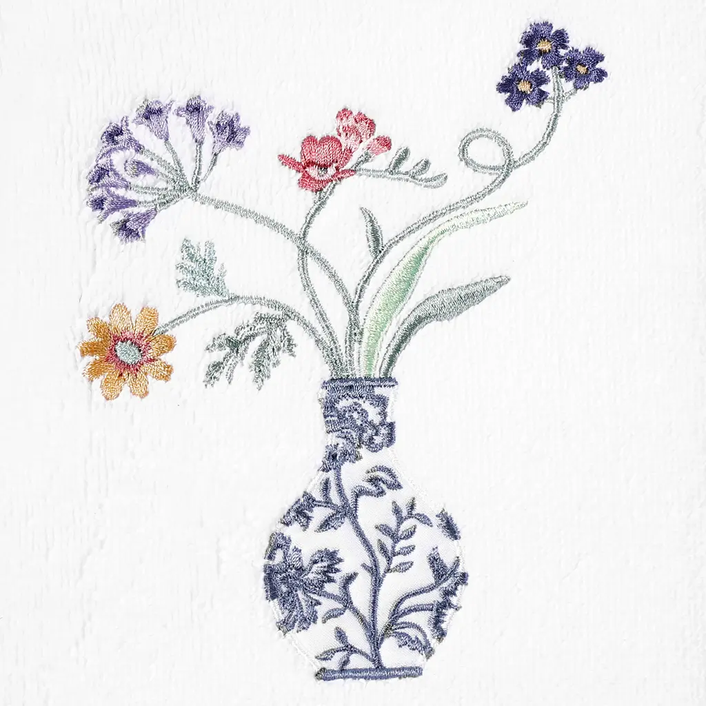Your decorations are not complete without charming embroidered towels for the comfort of your family and guests. The Stella towels feature lovely flower stems in an applique blue & white vase and are trimmed with a lustrous bengaline border. Cloud soft and super absorbent, these luxurious, durable towels keep their plush appearance after washing. The Stella Towel Collection brings cottage spirit and richness to your home decor and makes a great gift!Embroidered Flower & Vase design 100% Premium Turkish Cotton Superbly absorbent and quick drying Available in a range of lovely towel colors Machine wash cold, No bleach, line dry or dry clean Set includes 2 bath towels (27" x 54") / 2 hand towels (16" x 30") Made in Turkey Proudly Embellished in USA
