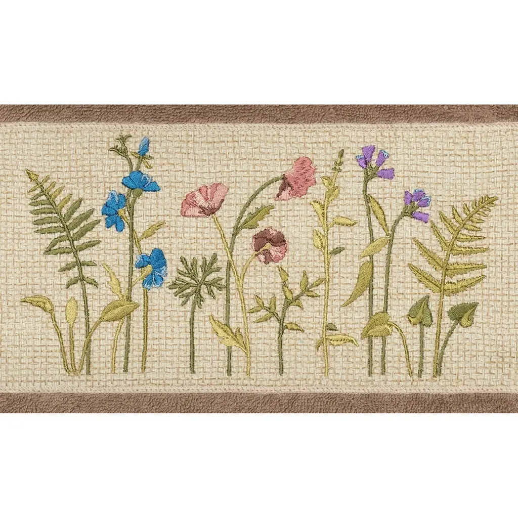 Authentic Hotel And Spa Brown Turkish Cotton Wildflowers Embroidered 3 Piece Towel Set - Latte