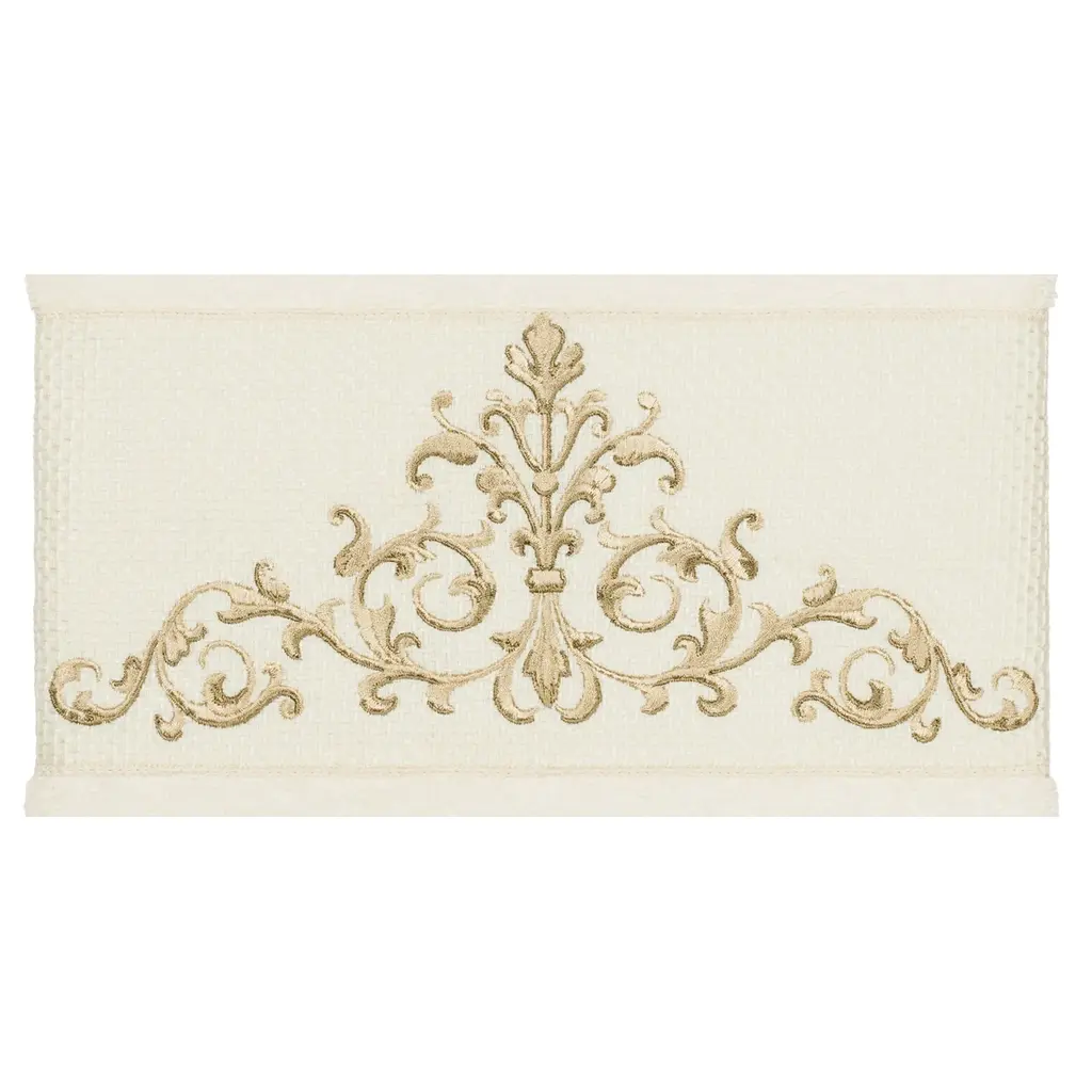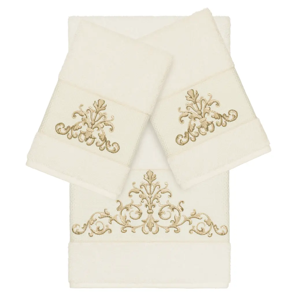 Authentic Hotel And Spa Cream Turkish Cotton Scrollwork Embroidered 3 Piece Towel Set - Cream